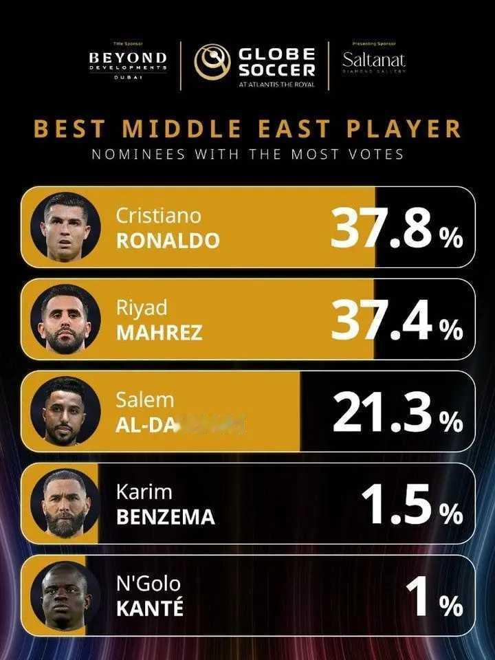 C罗又拿奖啦!0.4%险胜34岁巨星,沙特王子直言2亿欧年薪太值c罗 40岁的C罗还在疯狂收割荣誉!2025年环球足球奖最佳中东球员结果刚出炉,C罗以37.8%的得票率惊险夺冠,只比排名第二的34岁巨星马赫雷斯多了0.4个百分点!要知道C罗这赛季在沙特联赛可是杀疯了,刚在第9轮贡献逆天倒钩破门,帮利雅得胜利豪取9连胜领跑积分榜,2025年至今已经轰进38球,职业生涯总进球数都冲到954球了。赛场状态这么能打,拿奖也是实至名归,而且这已经是他连续两年拿下这个奖项了。最有意思的是前沙特体育部长阿卜杜拉王子的表态,直接力挺C罗:“他是唯一配得上天价年薪的外援!” 要知道C罗的年薪高达2亿欧,堪称体坛第一,但王子觉得这钱花得太值:毕竟C罗给沙特联赛带来的全球曝光度,可不是随便哪个球星能比的。