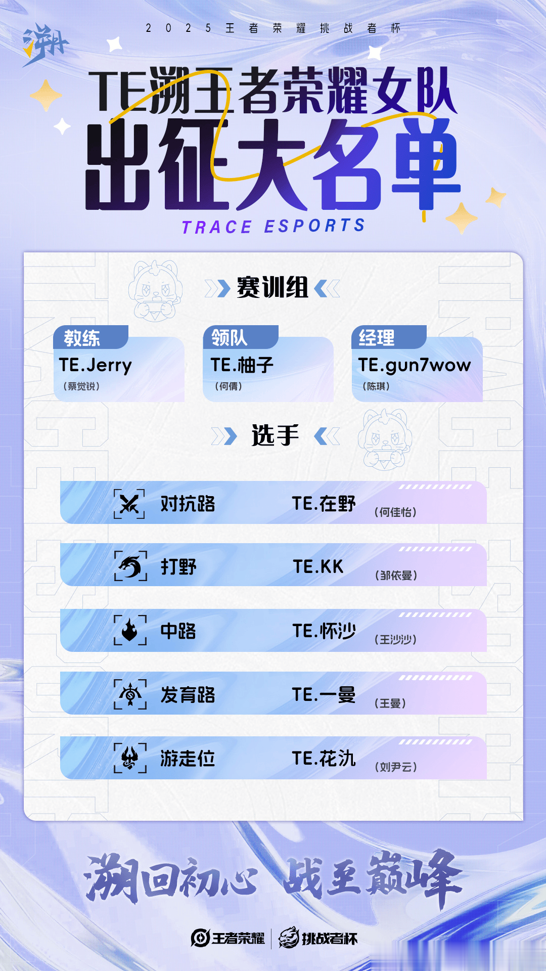 [TE溯王者荣耀女队2025王者荣耀挑战者杯出征大名单]