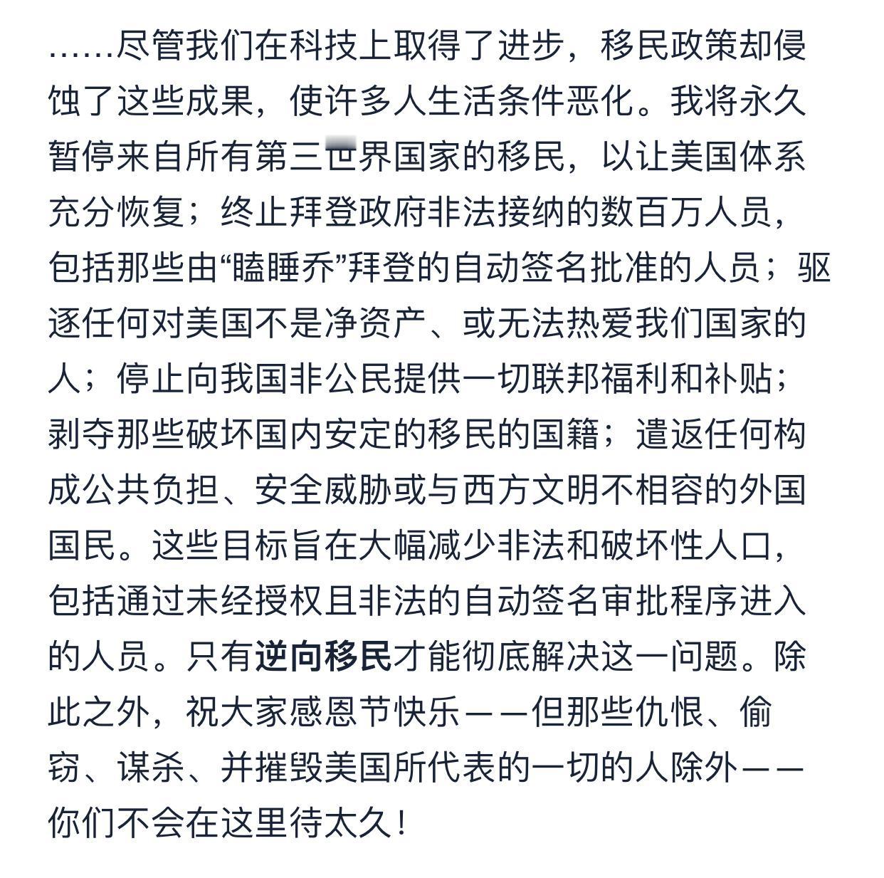 突发!特朗普在自己的社交平台账号上发文宣布:将永久暂停来自所有“第三世界国家”的移民。