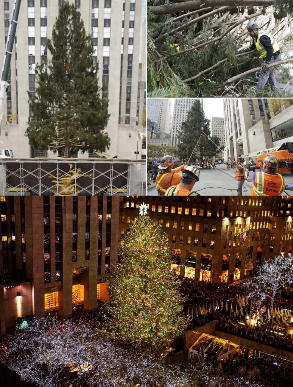 每年的圣诞树都经过精挑细选,通过直升机带到纽约。今年的圣诞树是一棵来自纽约州 East Greenbush 的挪威云杉 Norway Spruce,有75feet高,直径45feet,约11吨重,生长了大约 75 年~ 已经于11月8日到达纽约~