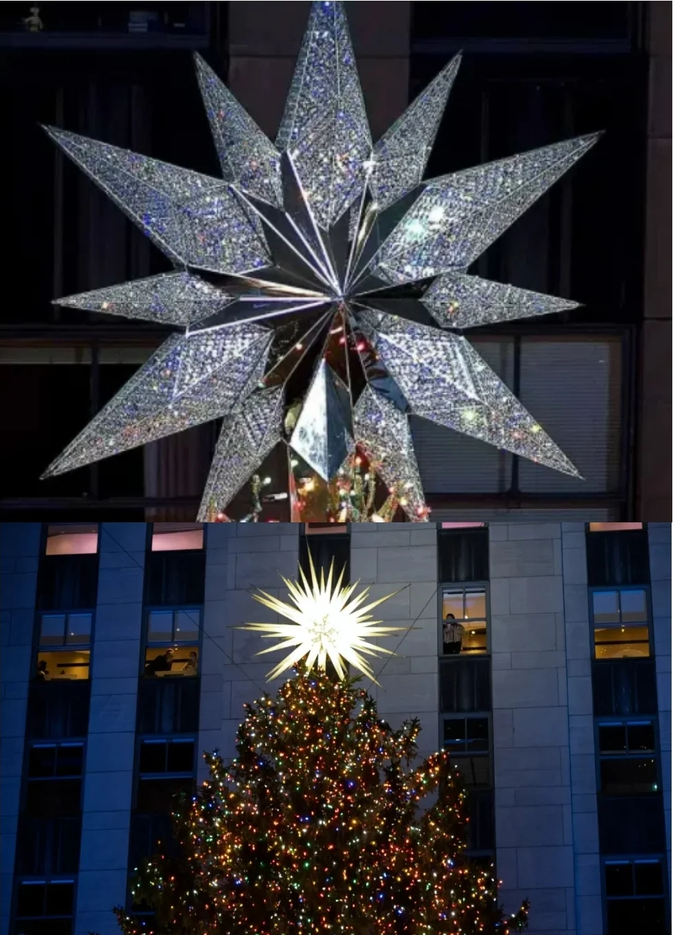 👍🏻2018年,著名建筑师 Daniel Libeskind 全新设计了一颗新的施 华 洛世奇之星,足足900磅重,沿用至今。水晶星星高9英尺4英寸,70 个三角形尖刺上,镶嵌了 300 万颗耀眼的水晶,简直太豪了!