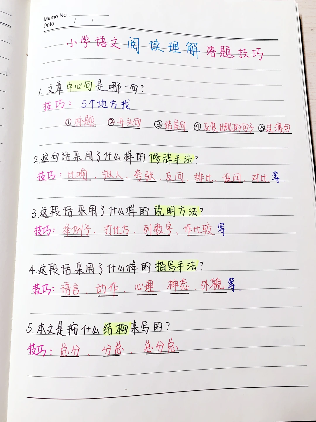 👉嘻嘻在做语文试卷时,有时觉得时间不够用,那是因为有一大部分的精力要用在阅读理解和写作上。 👉今日分享,整理了阅读理解做题步骤和答题技巧,让嘻嘻每天读一读,再也不容易丢分啦 不会阅读理解的学起来啦 👉掌握方法,让努力有方向!
