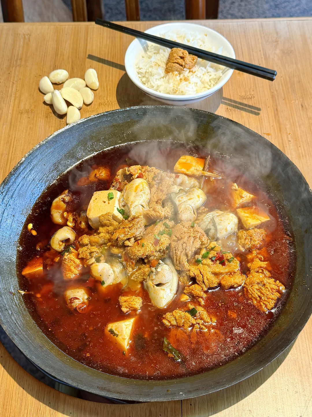 确实名不虚传🥹这么晚来还有人来排队!就藏在老居民楼下 ,不愧是本地人的食堂! 只有吃过才敢发言🙋2r的糖油粑粑!番茄牛腩烫饭、鱼籽鱼泡、贝贝南瓜粉蒸肉、渣渣牛肉滑蛋……真心平价好吃,一点不输笨罗卜!还有米汤免 费🆓喝!建议来长沙旅游的姐妹直奔这里叫:宝嗲煤炉土锅菜!不会失望