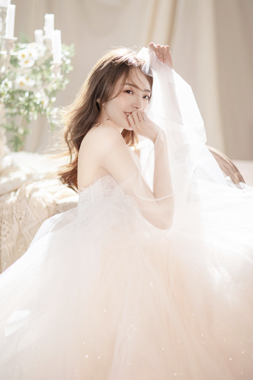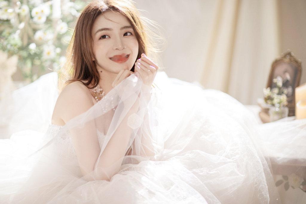 余霜拍婚纱大片,一袭白纱裙如梦似幻,是少女想要的样子