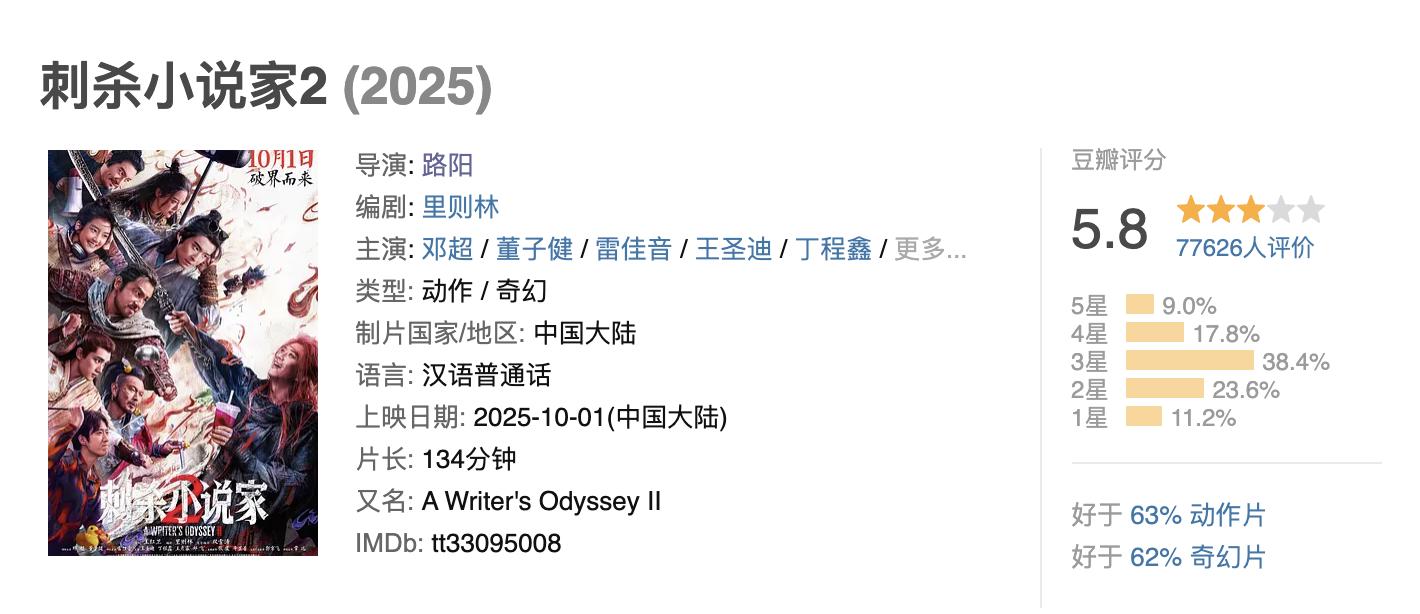 但是单从《刺杀小说家2》的镜头来看,我确实看不出啥水平了。