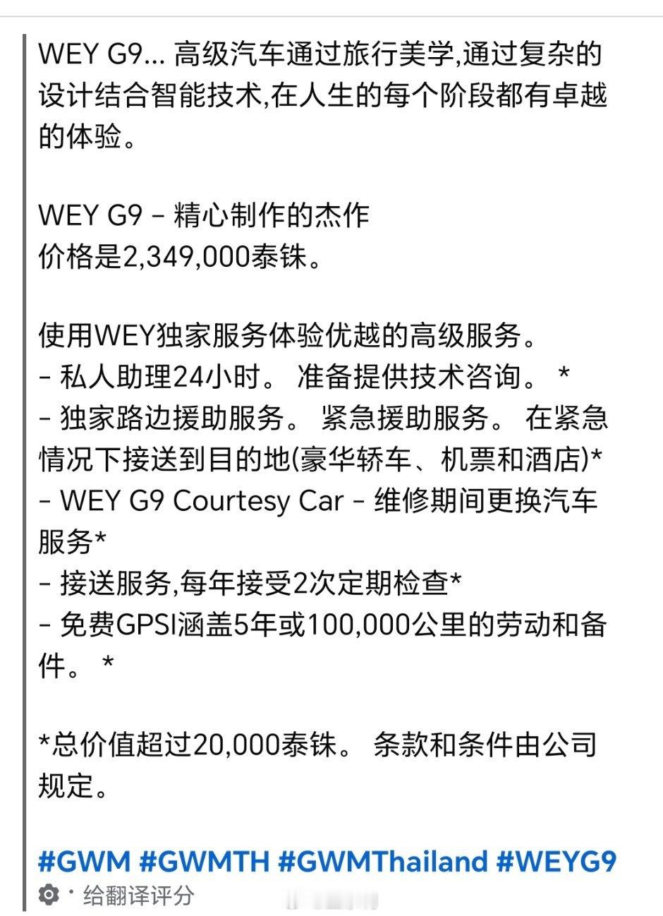 WEY G9(魏牌高山7)泰国上市,价格为234.9万泰铢,折合人民币51.65