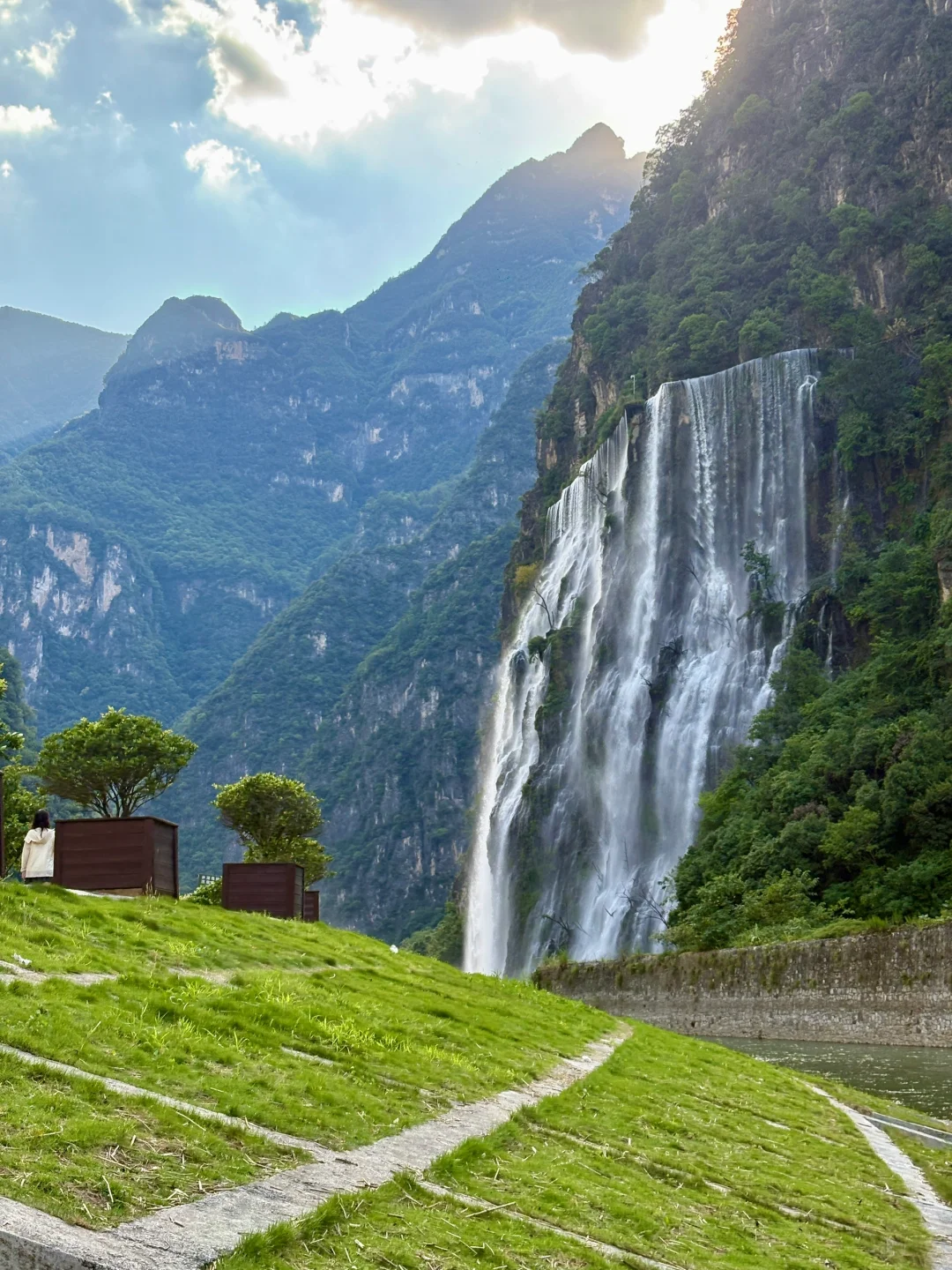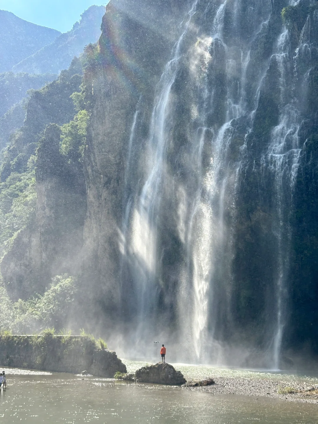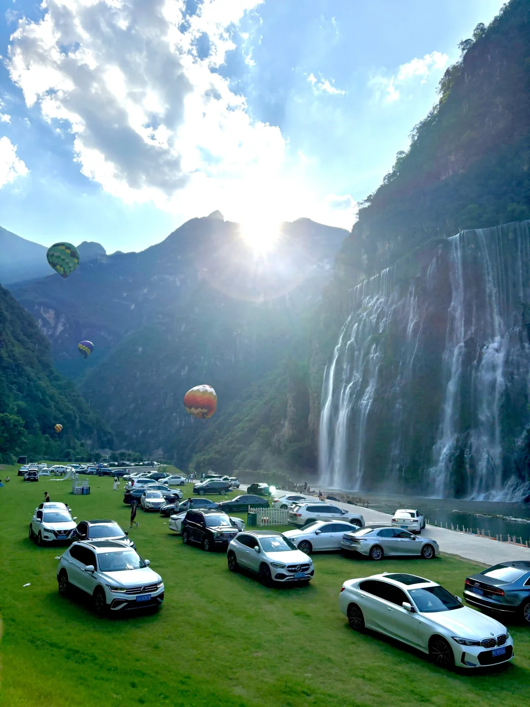 漂流的终点是高山草甸和大瀑布,还有超美的热气球拍照很出片,瀑布下很凉快
