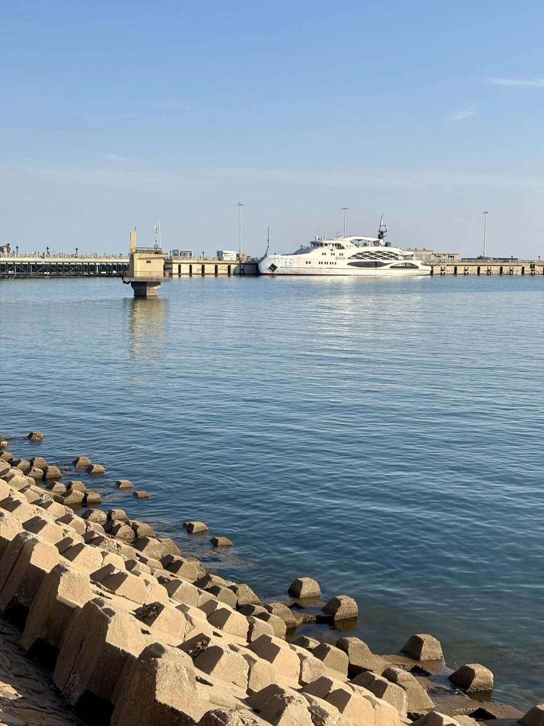 8️⃣甲码头:停靠着很多游轮,远处的灯塔海岸线很美