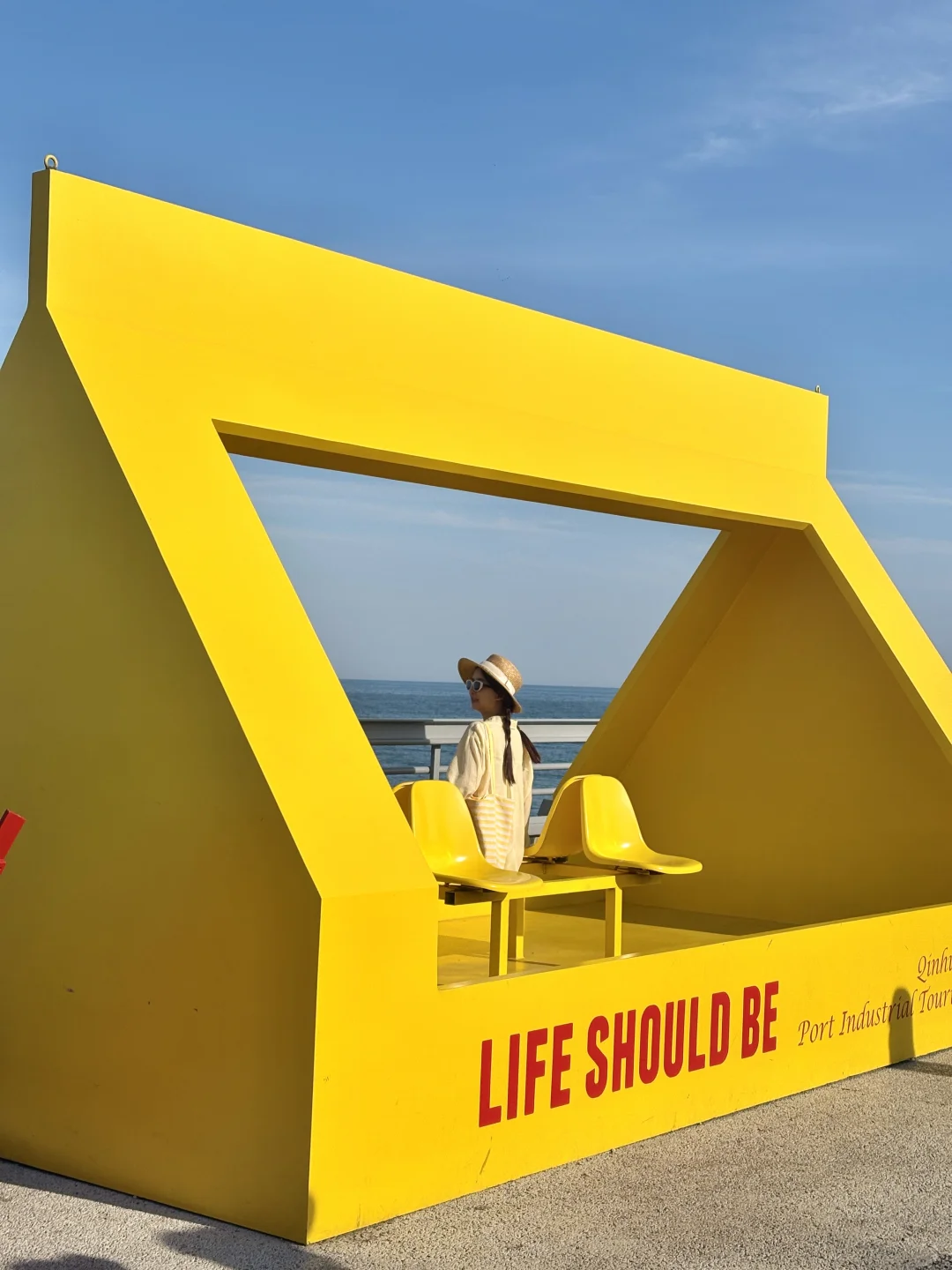 2️⃣黄色相框🖼️亮眼黄色框架框住碧海蓝天,随便拍都出片