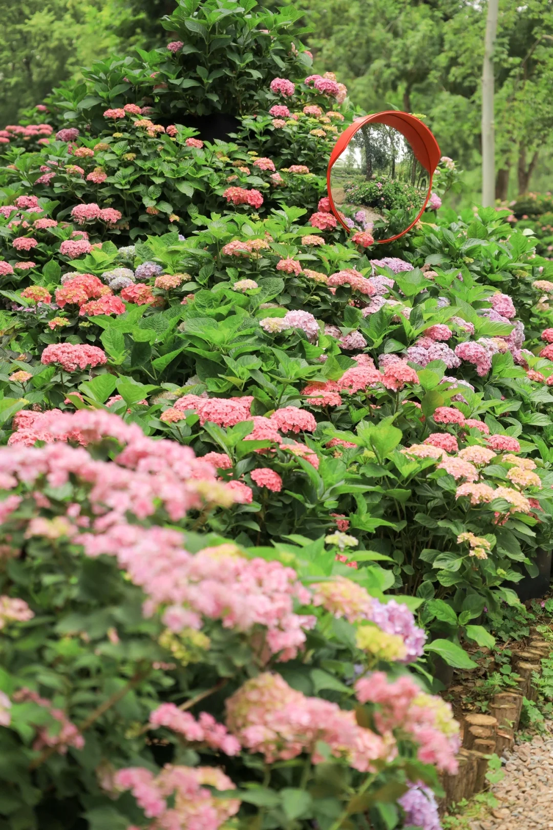 这里有很大一片绣球开的很密集,沿湖还有花径小道,随便找角度都好看