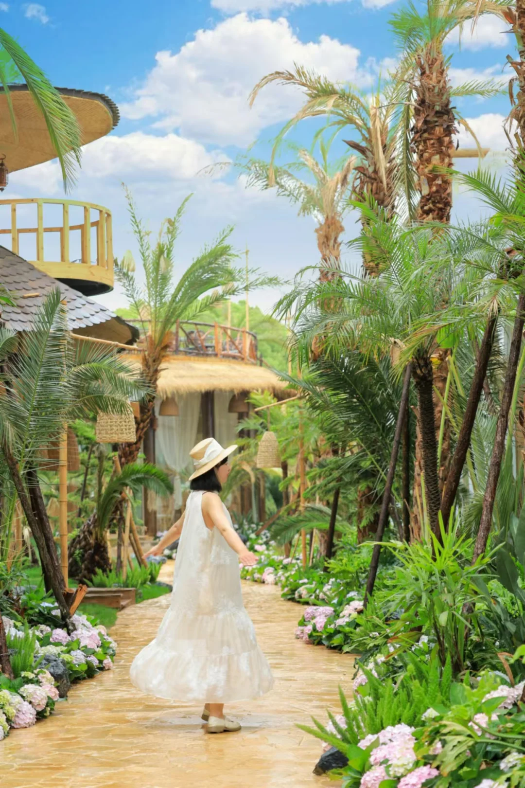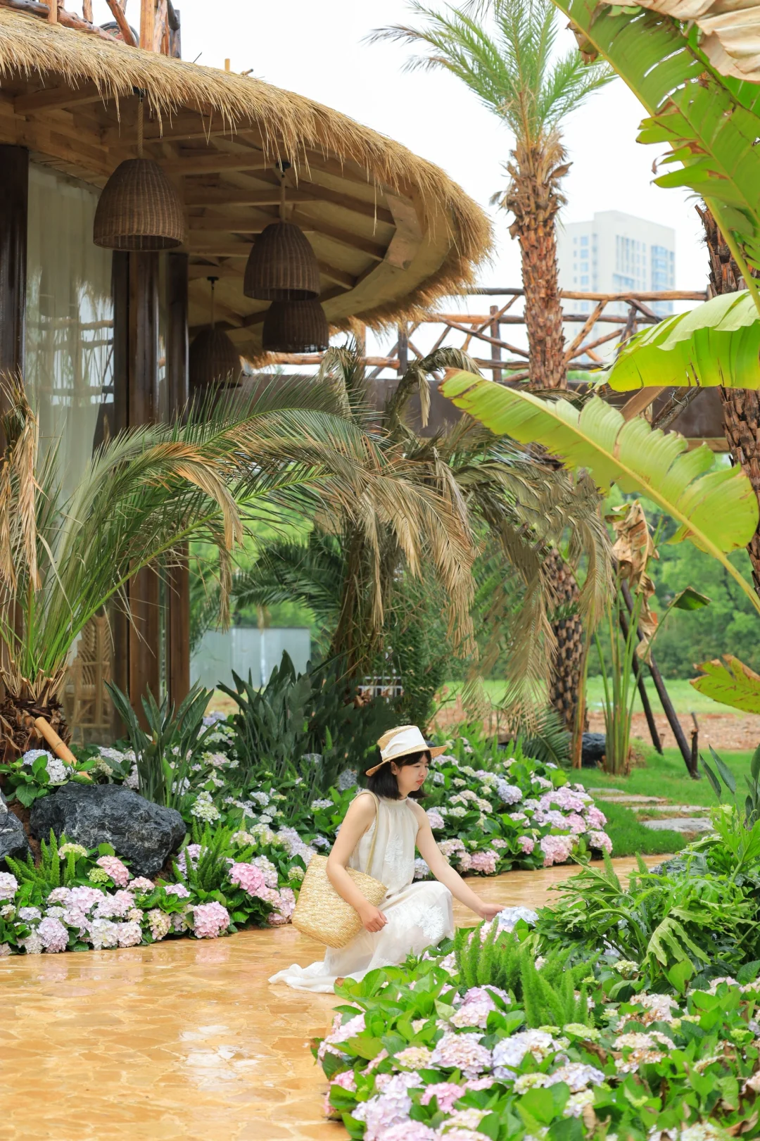 救命🆘在武汉发现了一个宝藏拍照地 仿佛来到东南亚小岛,朋友都以为我出国了 热带雨林🌴和绣球花小路好出片 适合和姐妹一起聚会太chill啦 有种在度假的感觉~