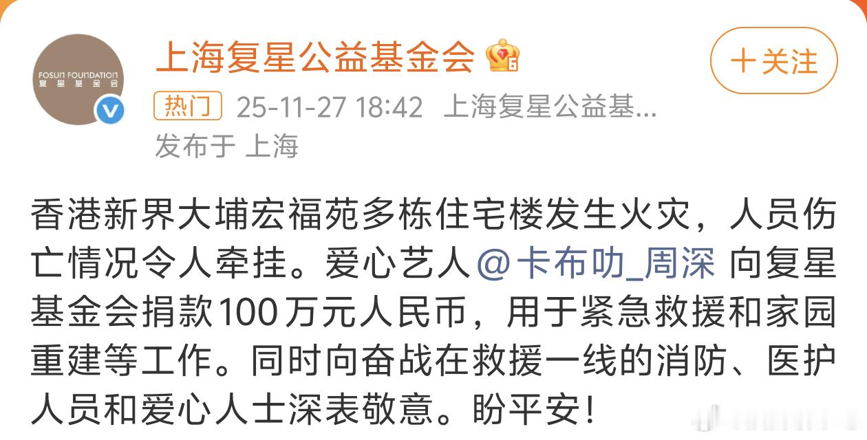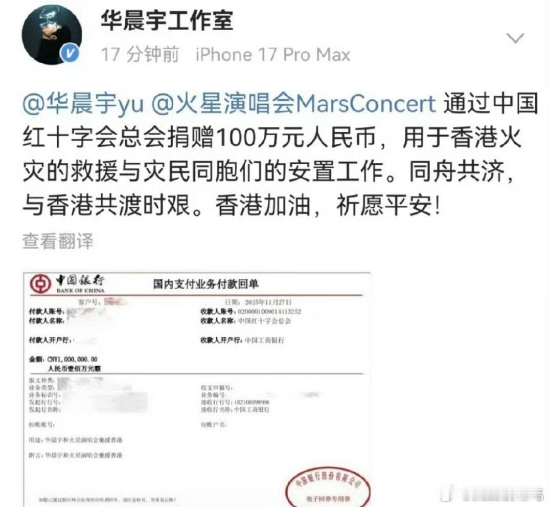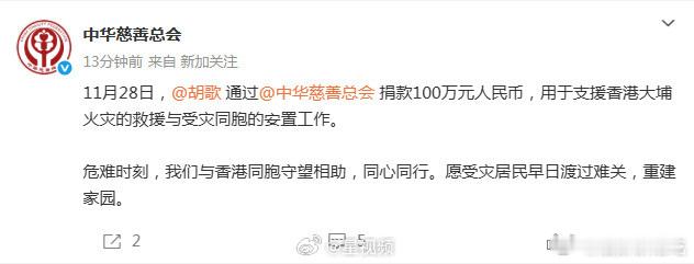 肖战、张艺兴、华晨宇、周深、杨紫、胡歌都给香港捐款100万元(还有我没刷到的其他大陆明星)灾难面前大家都有尽自己的一份心,好人有好报吧香港捐款