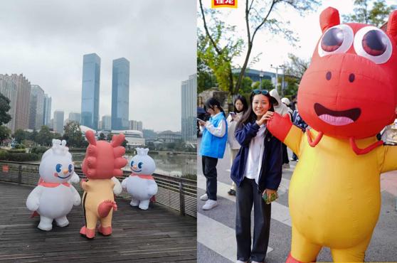 跨次元破壁互动:在城市热门打卡点,“小龙人”高调出街,与蜜雪冰城的雪王、雪妹上演“搭讪”同框,和偶遇的大学生们亲密合影,成功将自身打造为可互动、可偶遇的“行走的社交货币”。