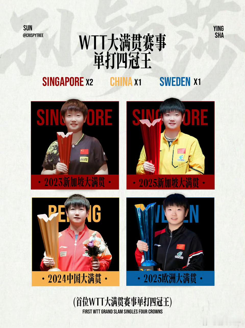 孙颖莎参加wtt多哈冠军赛2026比赛一轮一轮的,打完混团马上去的总决赛是女队唯一兼项的,总决赛还没打呢,2026的比赛都报上了,不能因为孙颖莎成绩稳定你们就什么保障都不给,赛程也不合理吧?