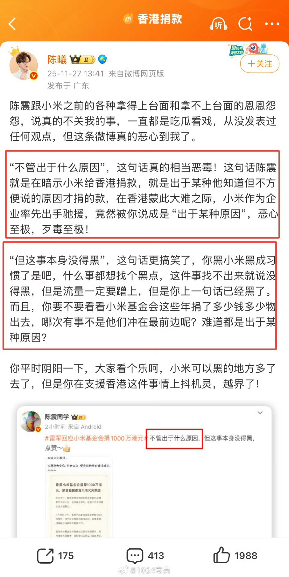 陈震 小米点赞就行了!说不管出于什么原因,但这事没得黑,啥意思