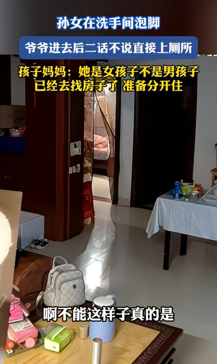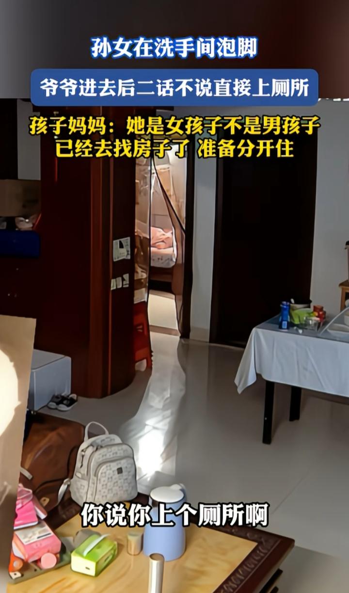 家里有这样的老人,真的让人反感!孙女在厕所泡脚,爷爷直接进去上厕所,妈妈发现以后气愤不已,现在已经决定分开住了 真的让人反感,很气愤,性别教育从孩子小的时候我们都在教了,孩子什么都知道了,可到头来老年人不注意,一点羞耻心都没有,也不考虑会对孩子有什么坏的影响 为啥很多人不愿意和老人住在一起,很多生活习惯,教育观念上差异太大,没办法统一,老人不愿意改。孩子专用的东西,说了多少次,老人就拿来用;家里孙子/孙女都大了,老人只穿一条内裤,满房子跑的;孙女换衣服,爷爷直接就进去的…… 如果家里有这样生活习惯不好的老人,还是尽早分开住的好,有些坏习惯会对孩子影响一生 图片及素材取自网络