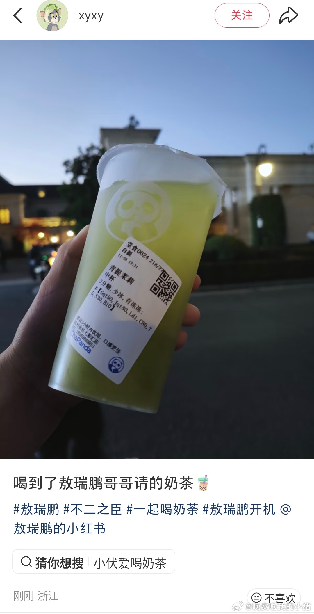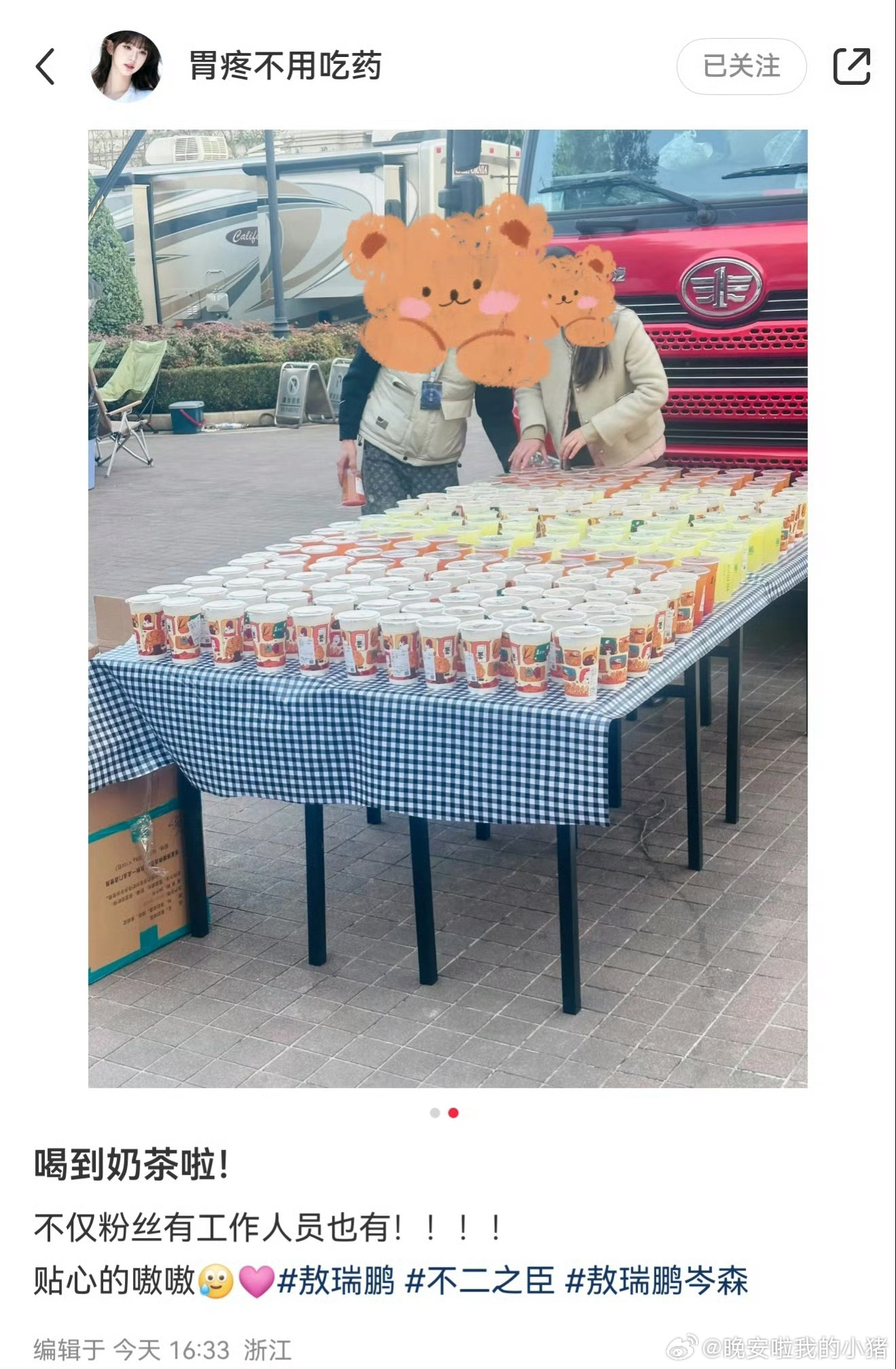 敖瑞鹏新剧开机两天已经请客两次了,一点点和茶百道,粉丝和工作人员都有,还会立马收