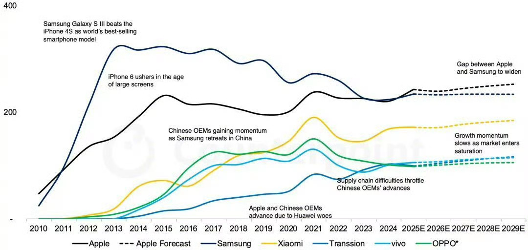今年iPhone全球出货量预计达2.43亿部苹果即将终结三星长达14年的全球智能