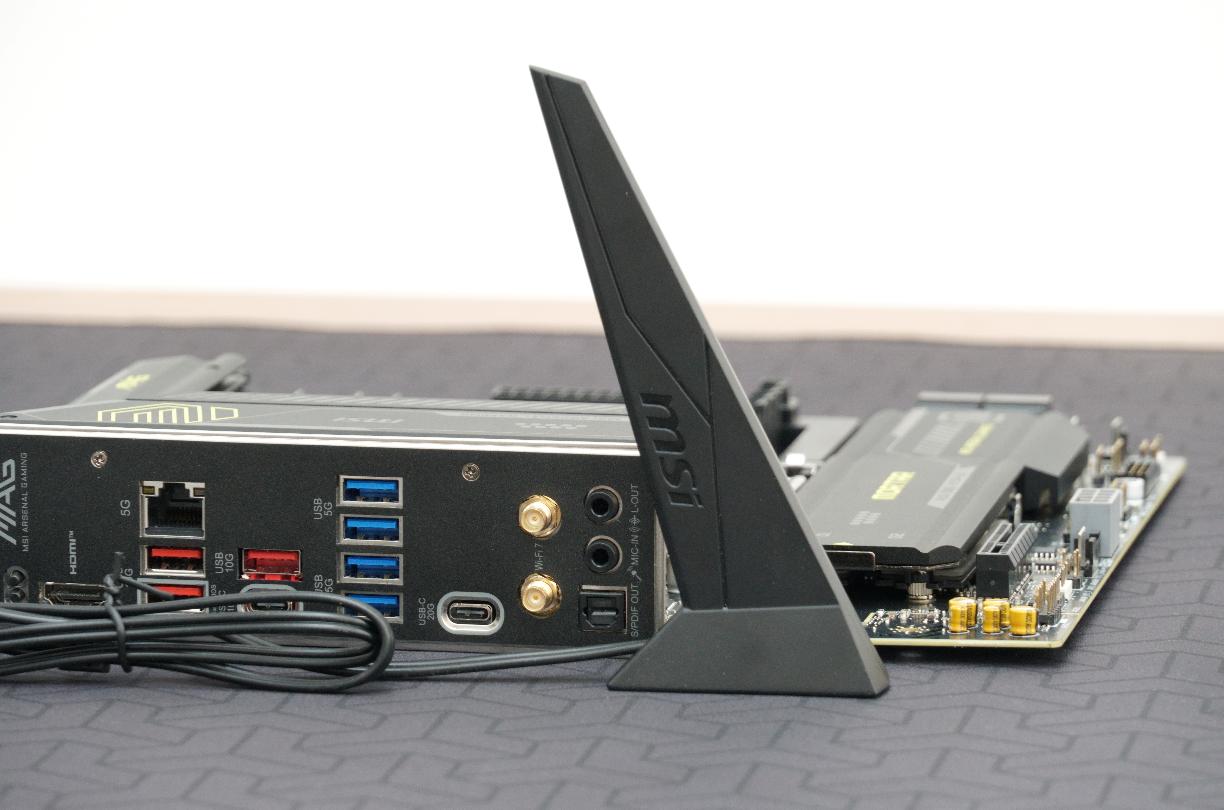 而在无线网络方面,微星MAG B850M MORTAR 迫击炮 WIFI主板同样不计成本的配备了最新的Wi-Fi 7无线网卡,同时配备了微星主板标志性的鲨鱼鳍无线天线,再配合上5G有线网口,可以说十分能打。
