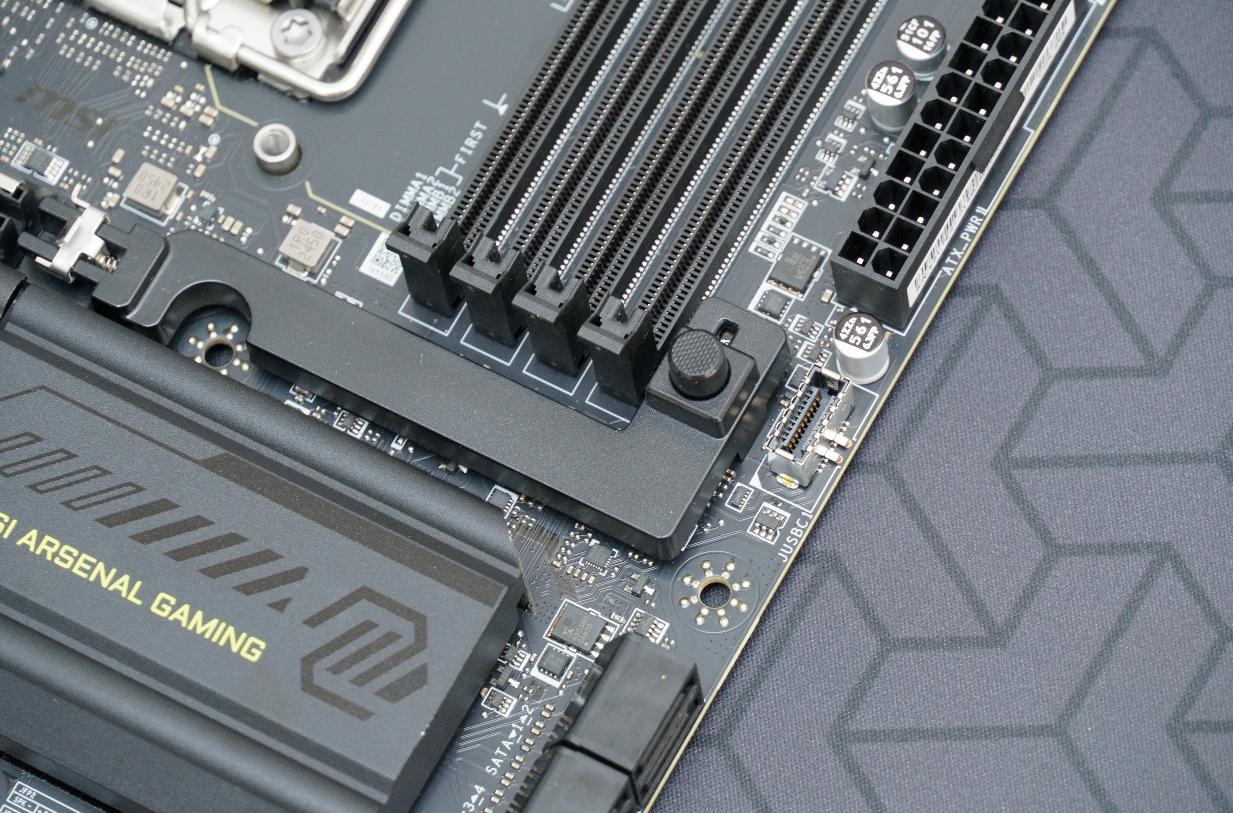 其中,PCIe 5.0x16显卡接口采用了微星具有专利的显卡快拆技术,按下此按键即可快速取下显卡,在更换显卡时十分方便。