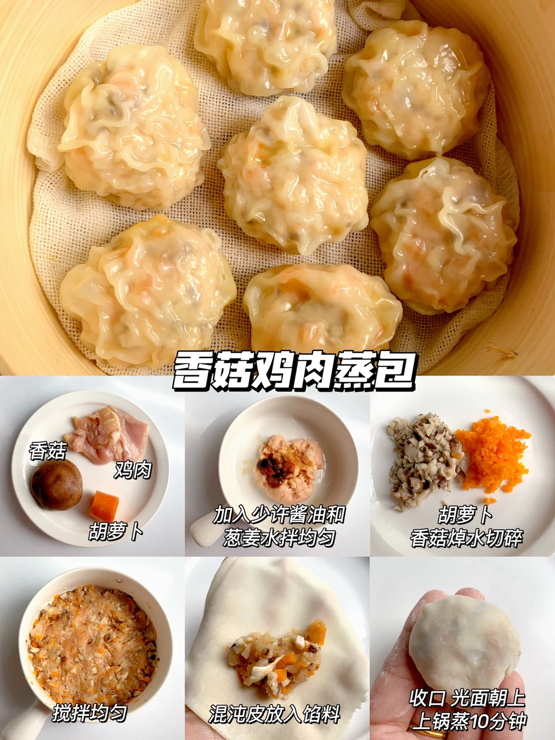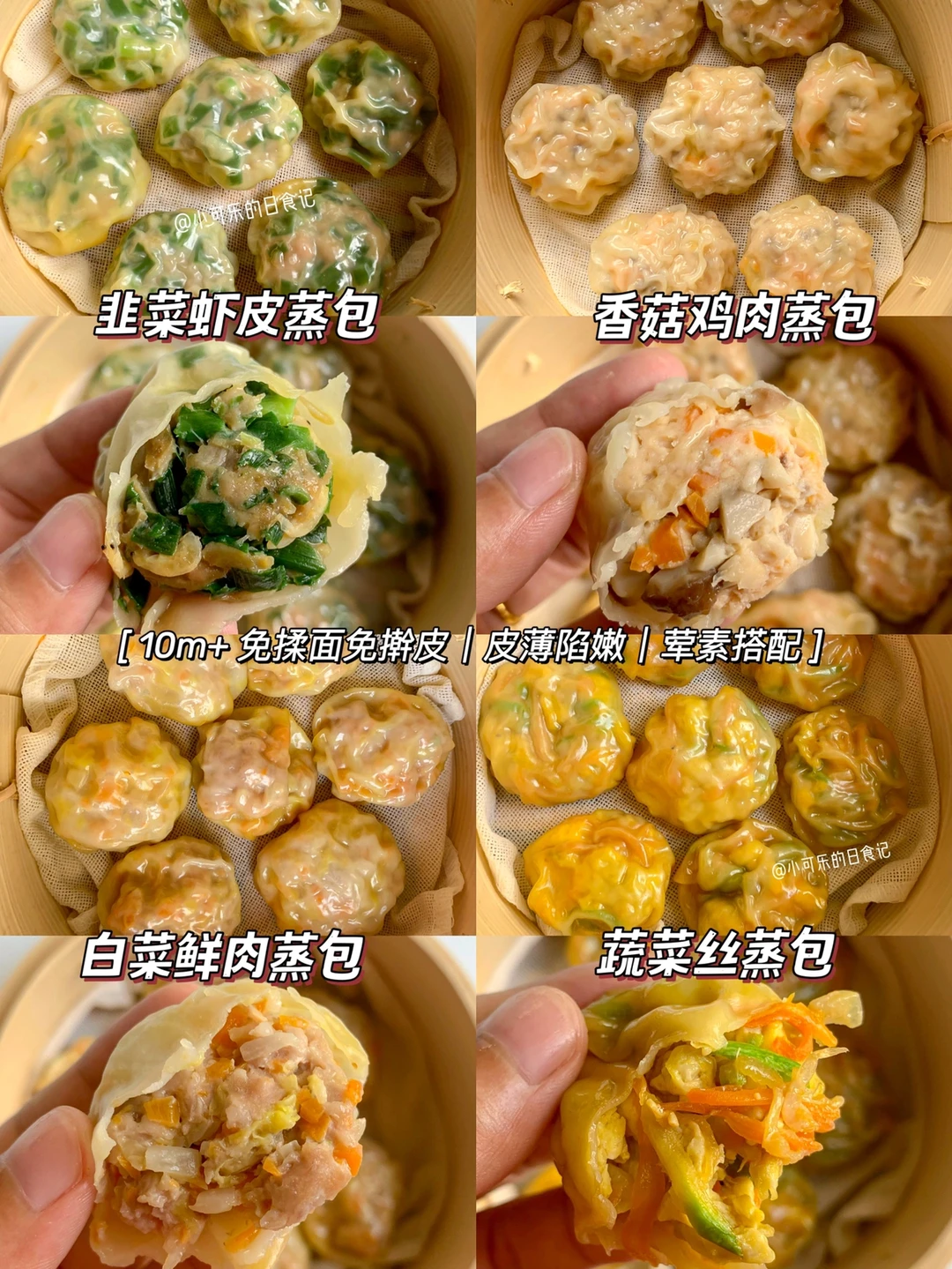 不用揉面不用发酵的薄皮小蒸包,荤素搭配营养丰富,鲜美好吃做法也简单,全家都爱吃,当早餐或者主食搭配粥或牛奶都可以,孩子一口接一口,好吃到停不下来[派对R][派对R]