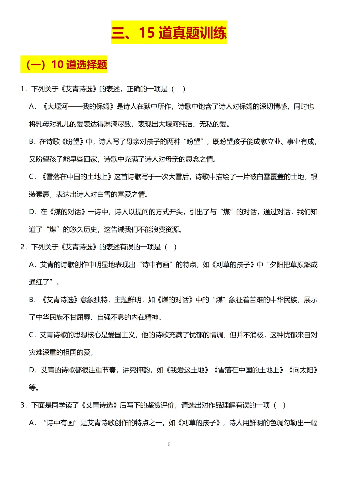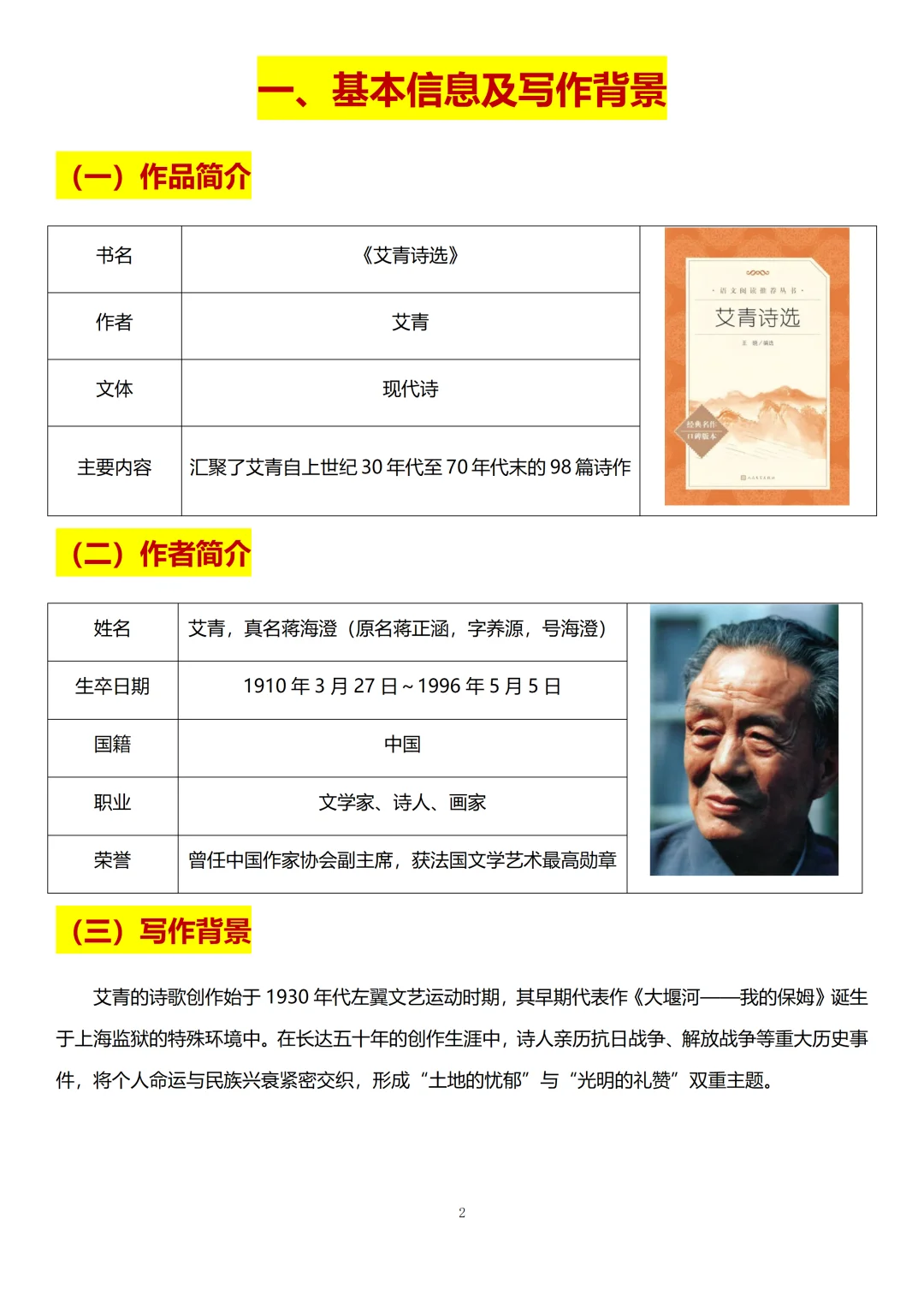 👉 小蓝老师给大家梳理了《艾青诗选》常考的知识点