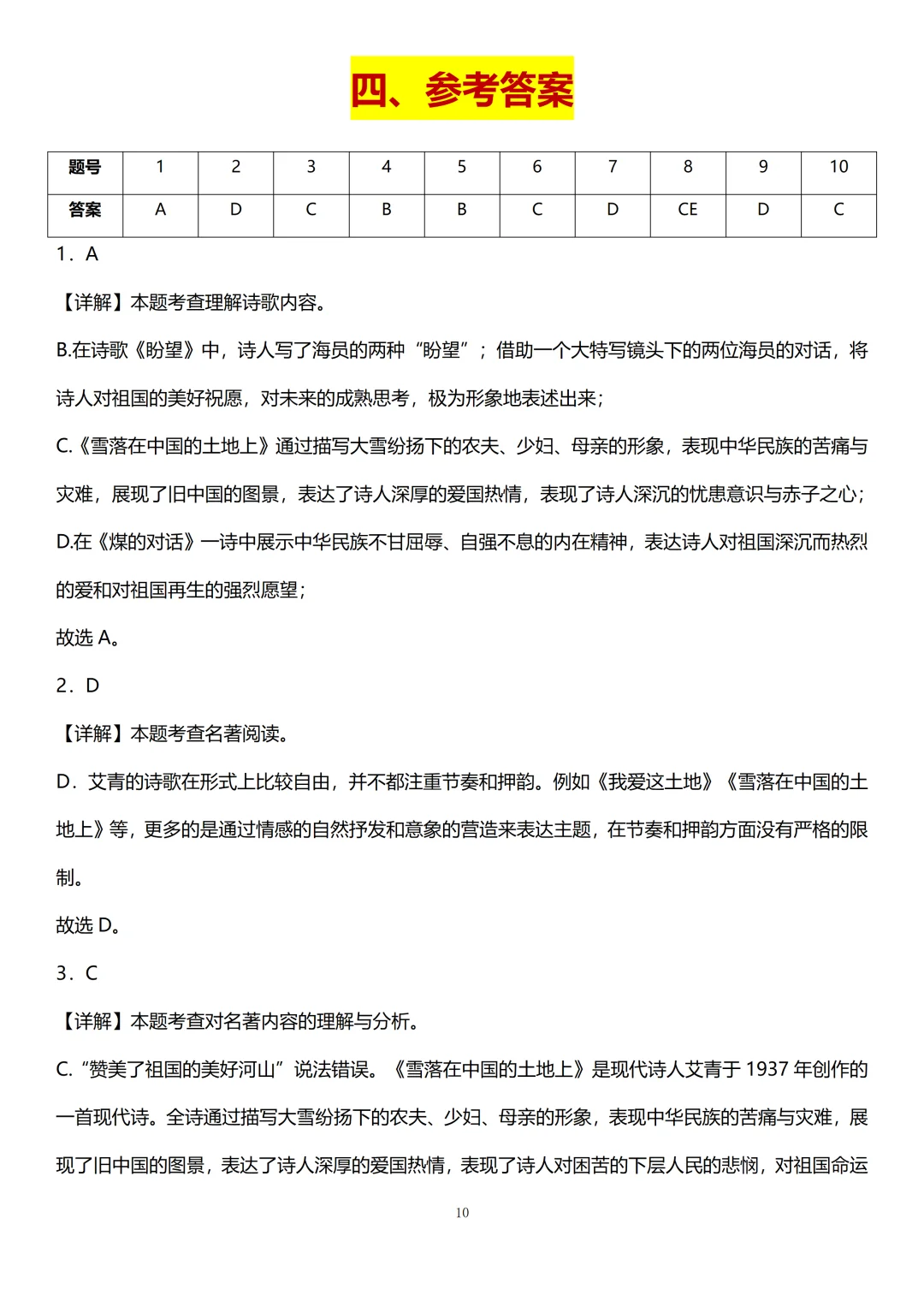 小蓝老师看了上百张全国各地九上的第一次月考试卷。连夜肝出这份「九上第一次月考名著专题汇总」,从《艾青诗选》的写作背景、10篇文章主要内容、主旨情感到重点人物及情节,4类必考点和15道真题全覆盖。