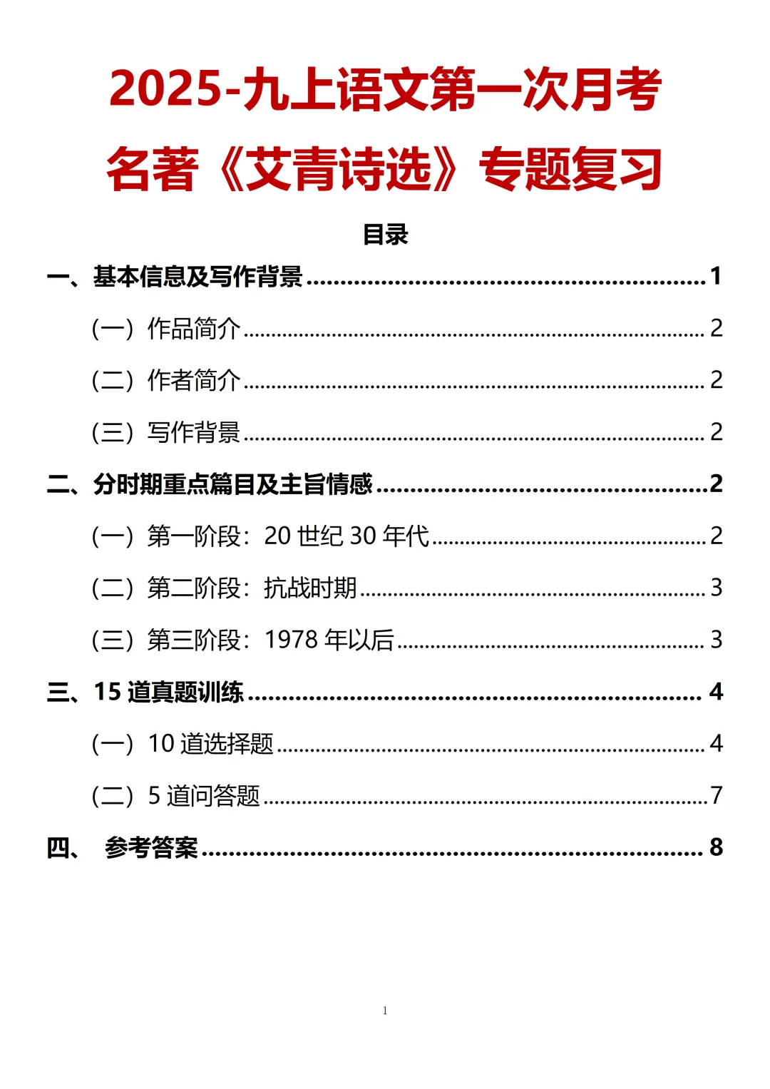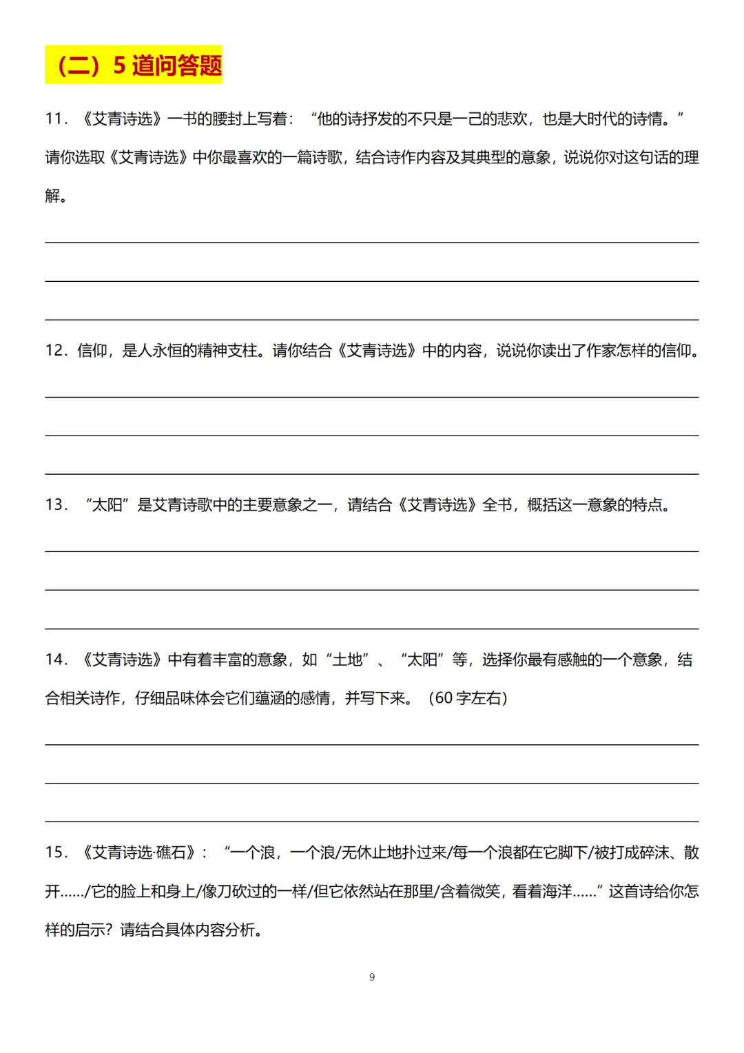 [星R]九上第一次月考名著板块主要是考《艾青诗选》。