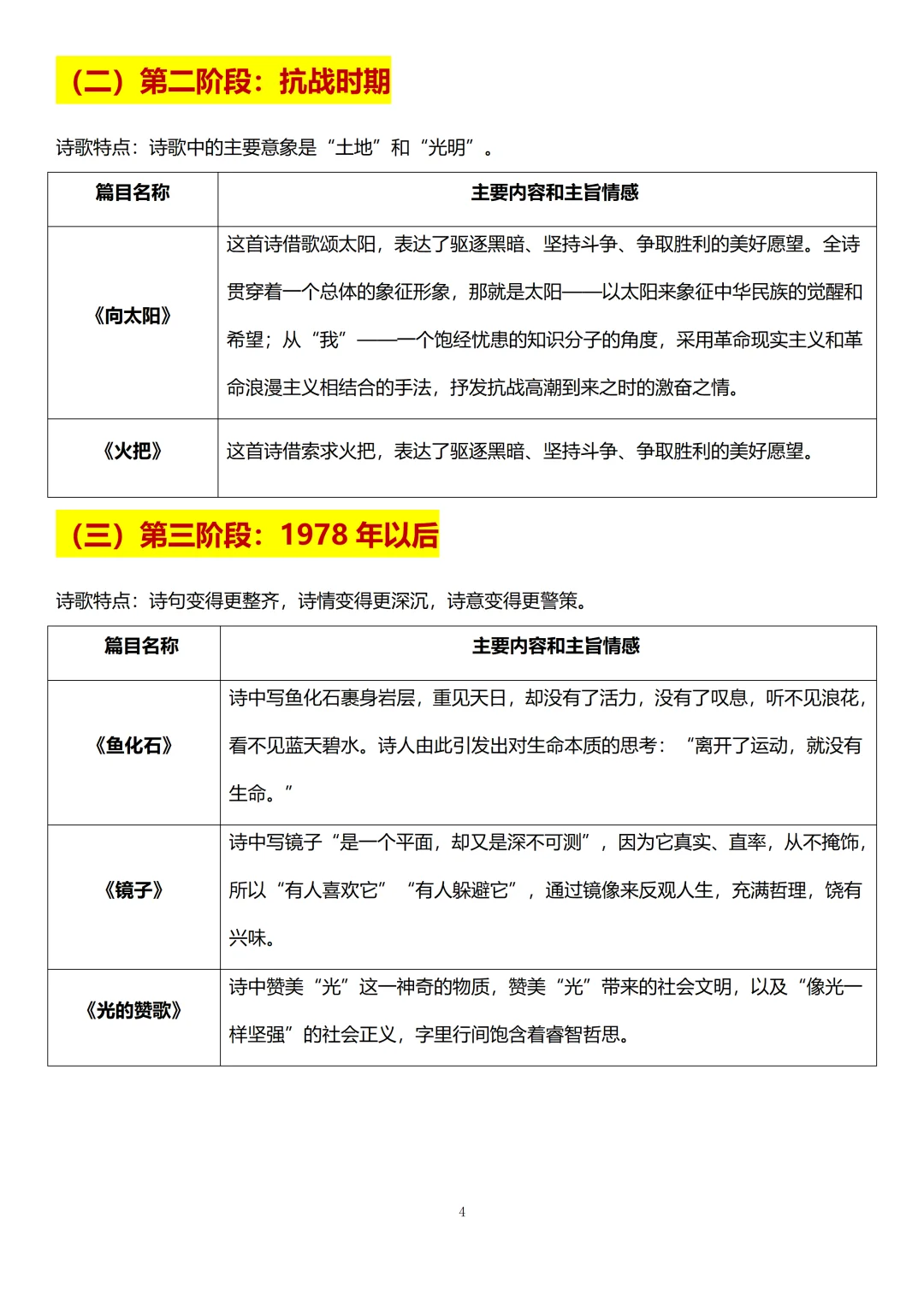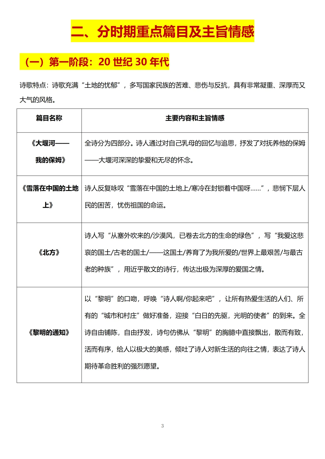 我们需要记住并区分不同时期的重点篇目的主要内容和主旨情感[耶R]