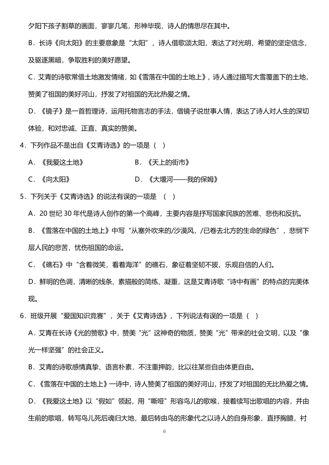 首先要了解《艾青诗选》的作品简介、作者简介以及写作背景。[鼓掌R]这些都有可能会成为选择题的选项,以文学常识的形式考察你。