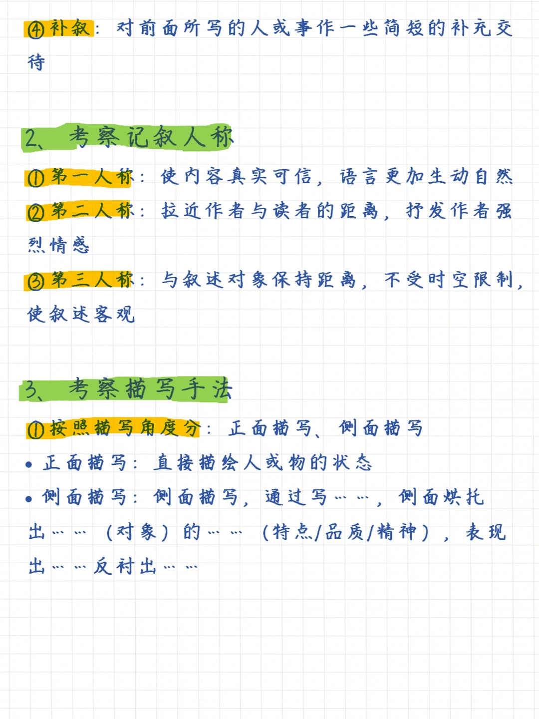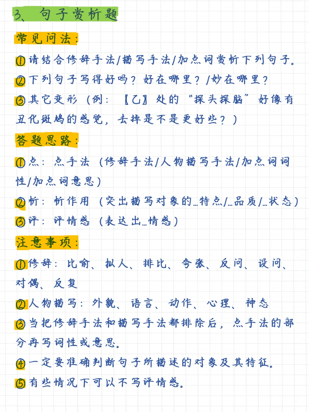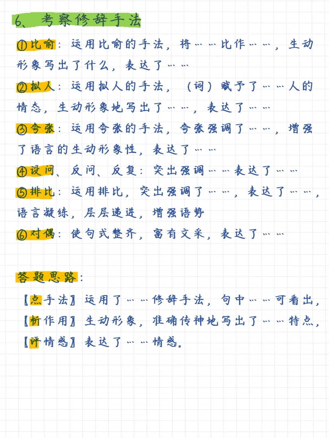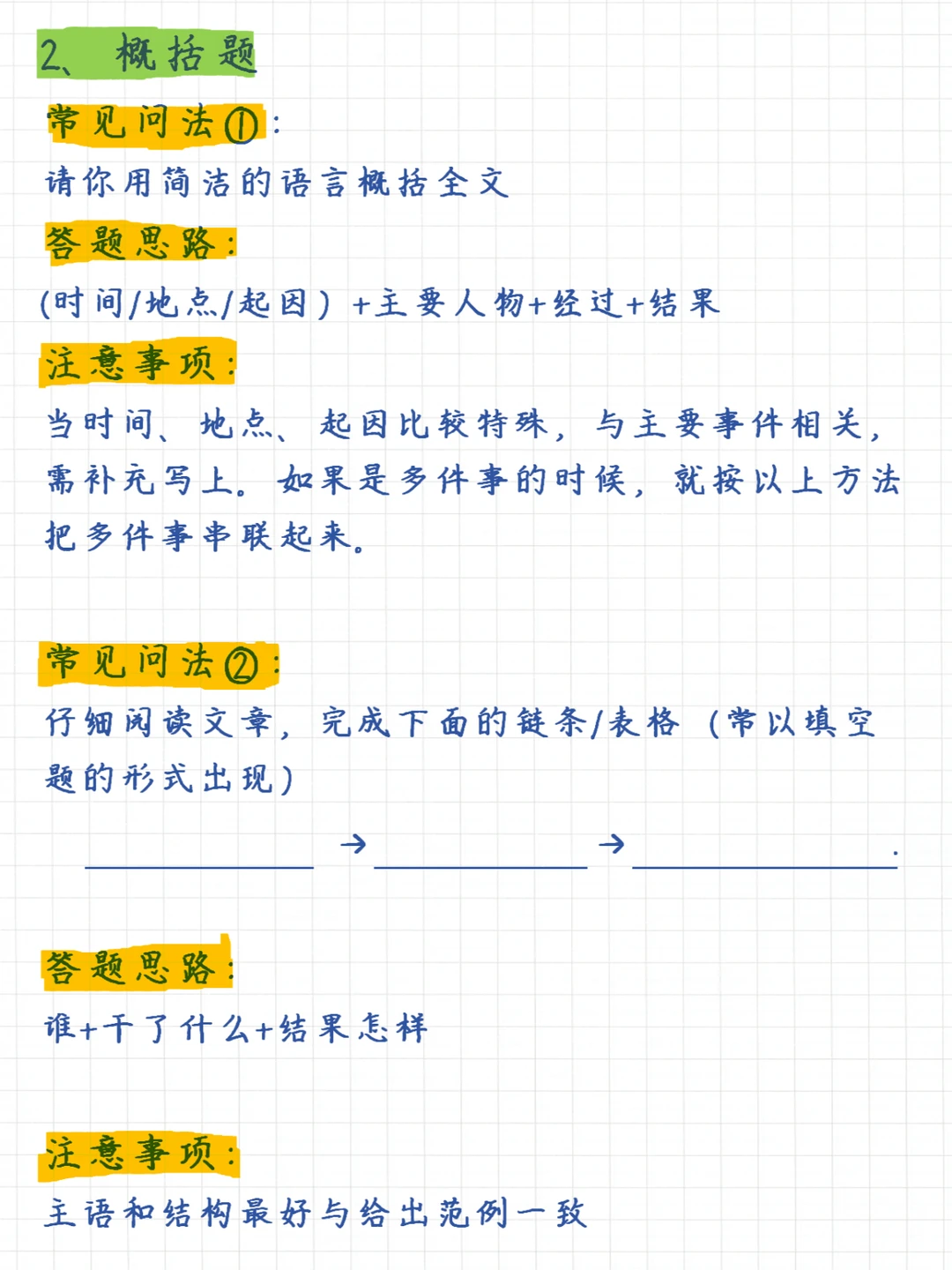 一句话总结记叙文阅读理解满分技巧:掌握6大知识要点、牢记7大常考题型 6⃣️大知识要点✅: 1、记叙顺序 2、记叙人称 3、描写手法 4、议论的作用 5、抒情的方法 6、修辞手法 7⃣️大题型✅: 1、信息筛选题 2、概括题 3、句子赏析题 4、人物形象题 5、标题的含义及作用题 6、句子或段落作用题 7、文章主旨理解题