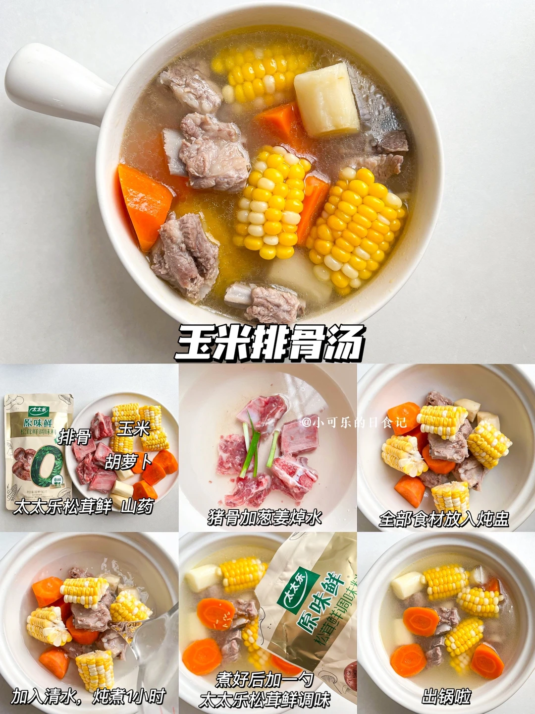 🥣食材:排骨、玉米、胡萝卜、山药、太太乐松茸鲜