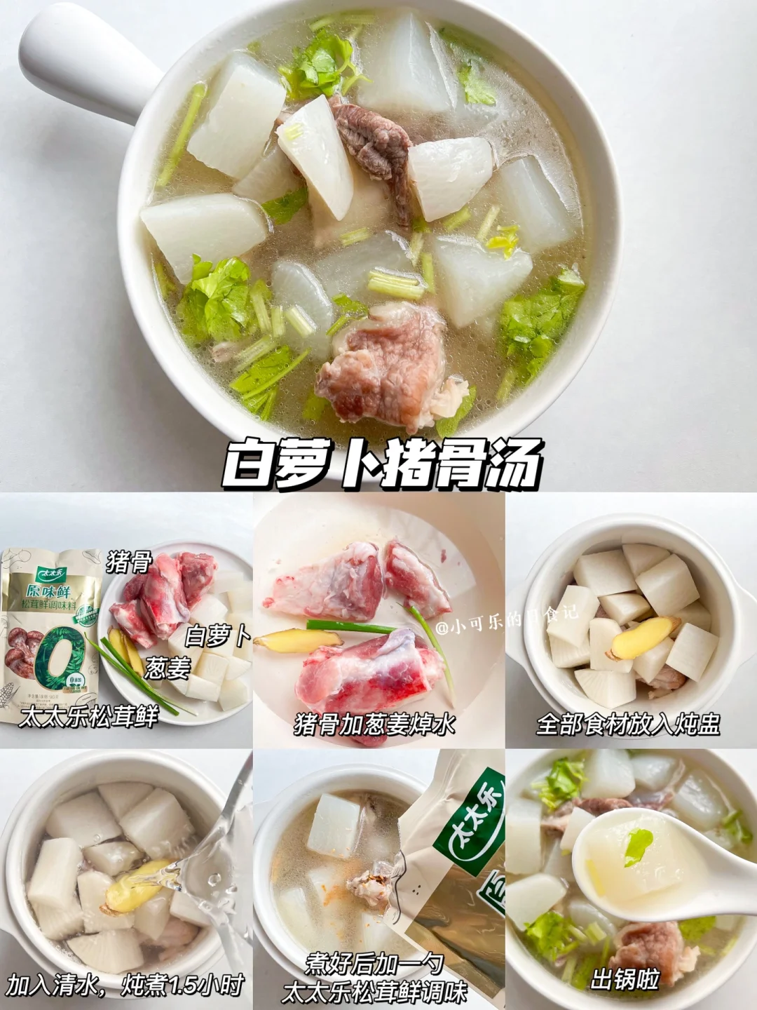 🥣食材:猪骨、白萝卜、葱姜、太太乐松茸鲜