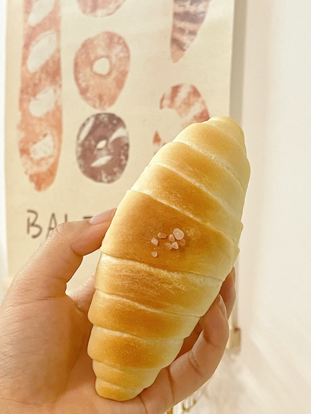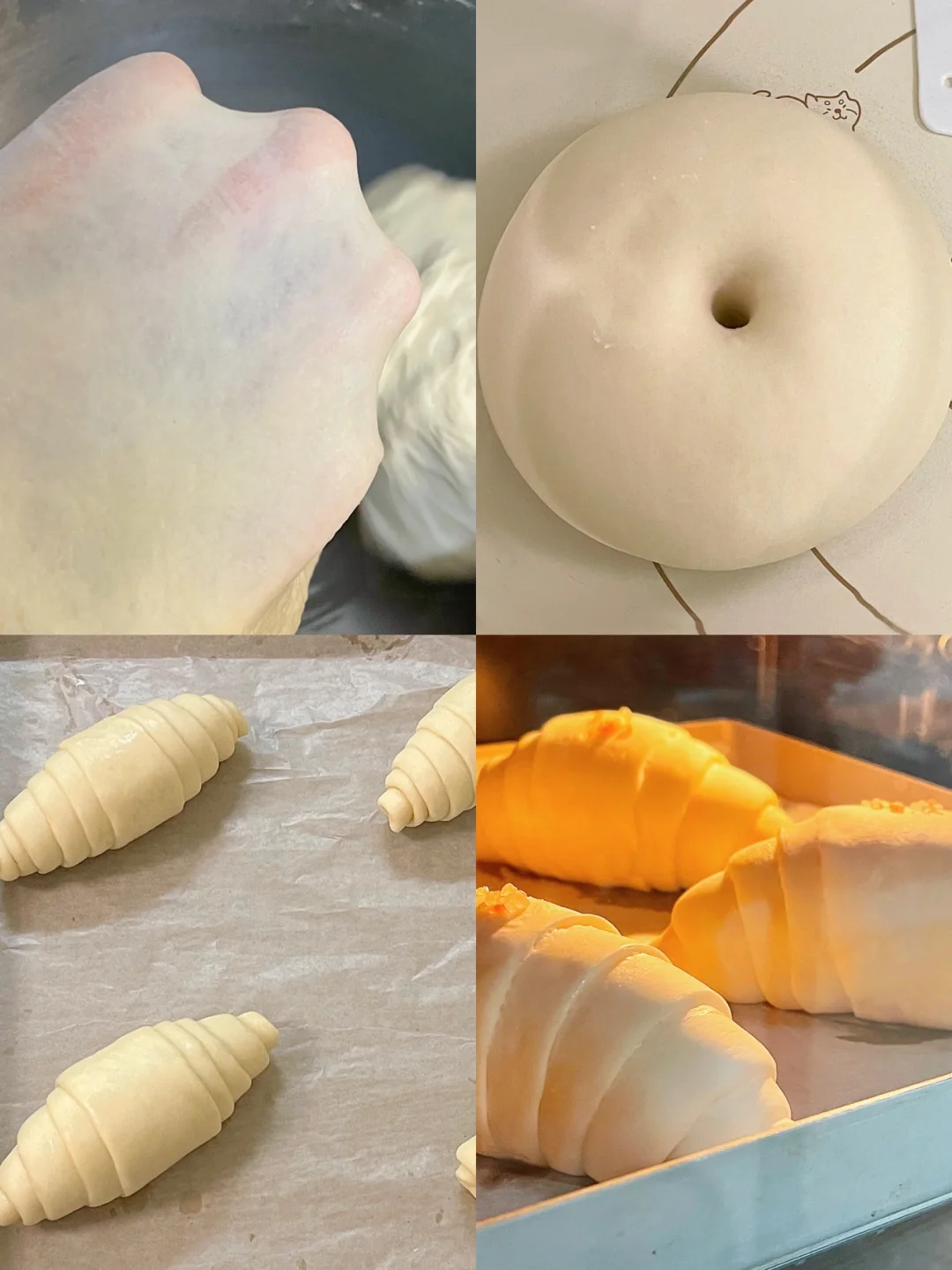工作日冰块加满的生椰拿铁,幸福碰杯[偷笑R] - 今天是久违的盐面包,不同的是这次自己动手 实现盐面包自由👍第一次动手记录一下 深切的感受到了玩面团的快乐[赞R] 第二天早餐☀️ 复烤以后夹入了培根和滑蛋🍳一口香绝了 待我多多联系,给你们分享详细做法[偷笑R]