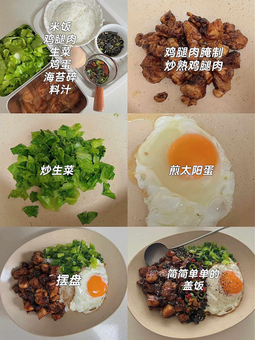 普通人的减脂餐-鸡腿肉生菜盖饭🍱