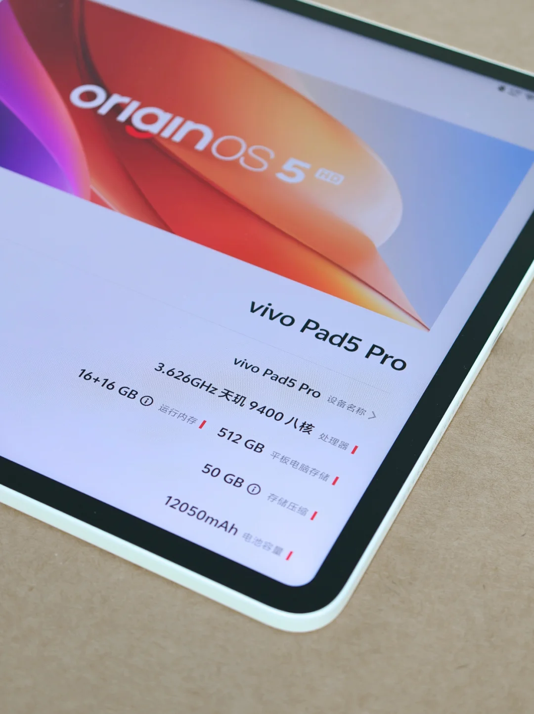 性能其实只要用了旗舰芯片就不会差到哪里去😏,vivo Pad5 Pro用的是蓝晶×天玑9400[得意R][得意R],蓝厂的天玑芯片调校口碑挺好的,无脑冲就完了,玩玩崩铁原神之类的大型游戏没啥压力🤩🤩。电池给了12050mAh容量,虽然还没试能坚持多,但是玩一天或者正常用几天都没啥问题。