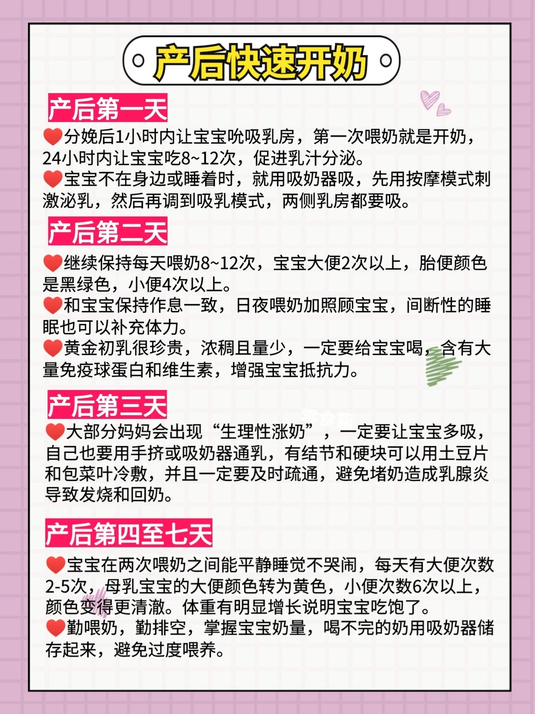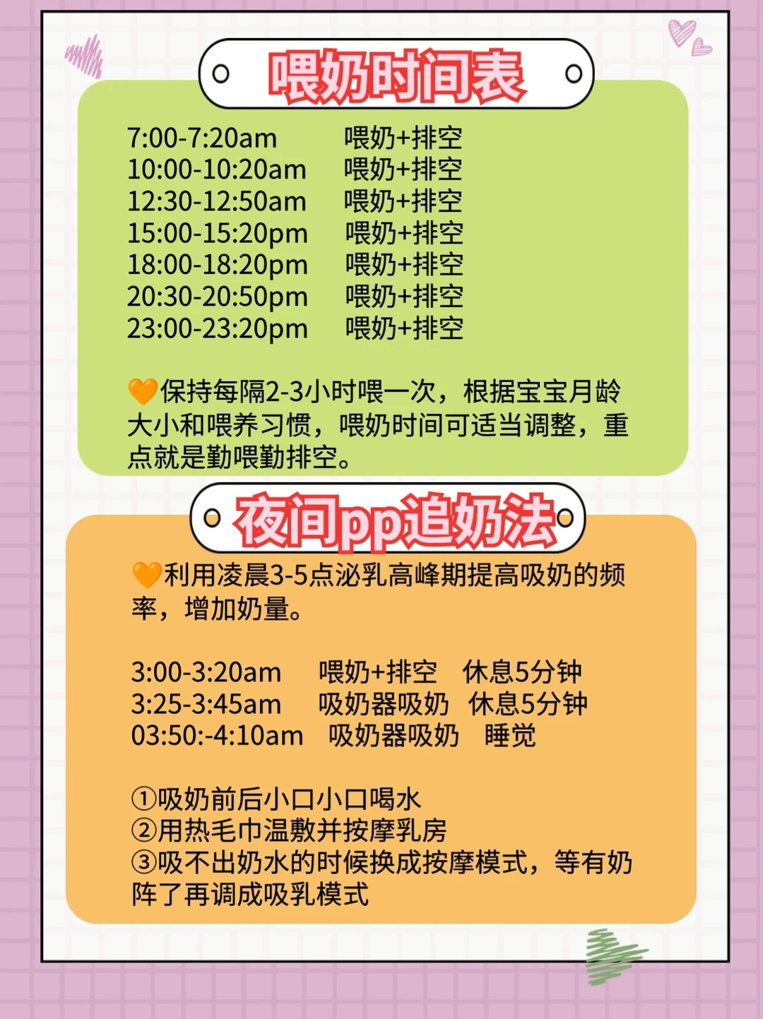 ❗特别注意:涨奶如果不及时吸出,就是回奶的开始,宝宝不在身边,要勤排,避免涨奶回奶。如果宝宝睡着了,可以先吸出一些,等宝宝醒了再喂饱。