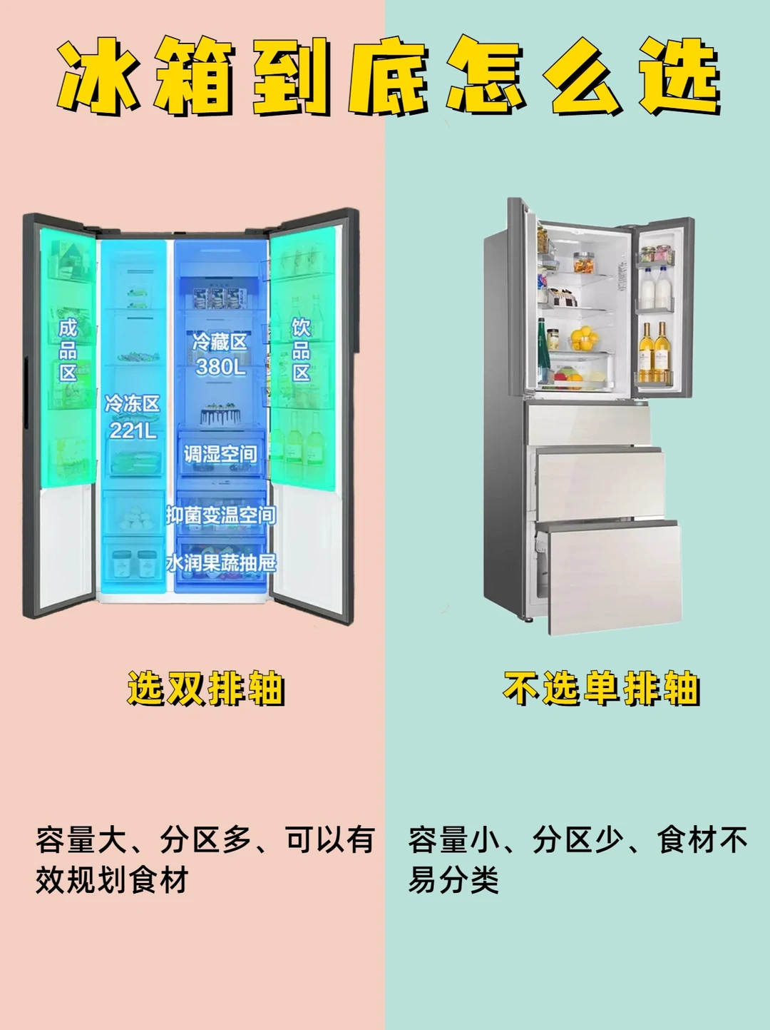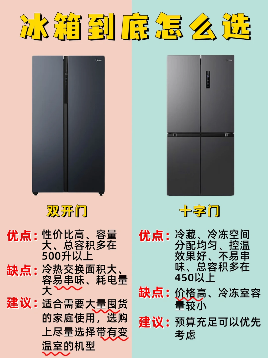 ✅优点:冷藏、冷冻空间分配均匀、控温效果好、不易串味、总容积多在450以上 ❎缺点:价格高、冷冻室容量较小