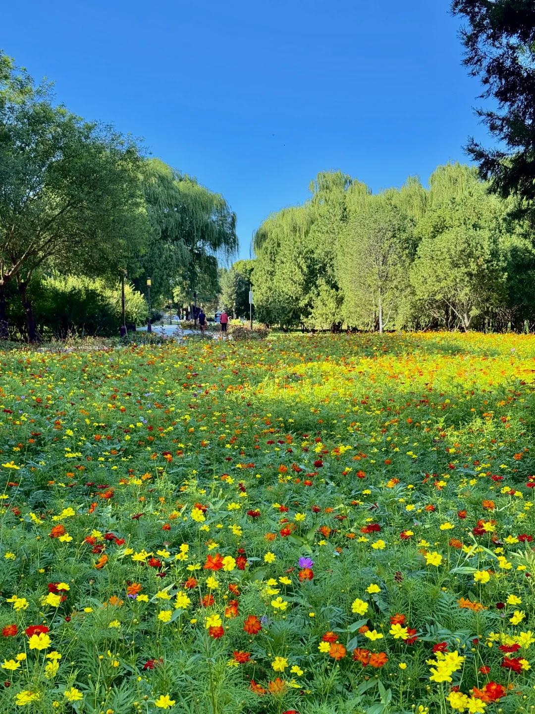 ✅一号机位:藻园入口左转,步行约300m就可以看到第一片黄秋英花海🌼是这三片里面坠大的,周末去人不是很多有一条步行道可以拍出人物在花海里奔跑的油画感🎨