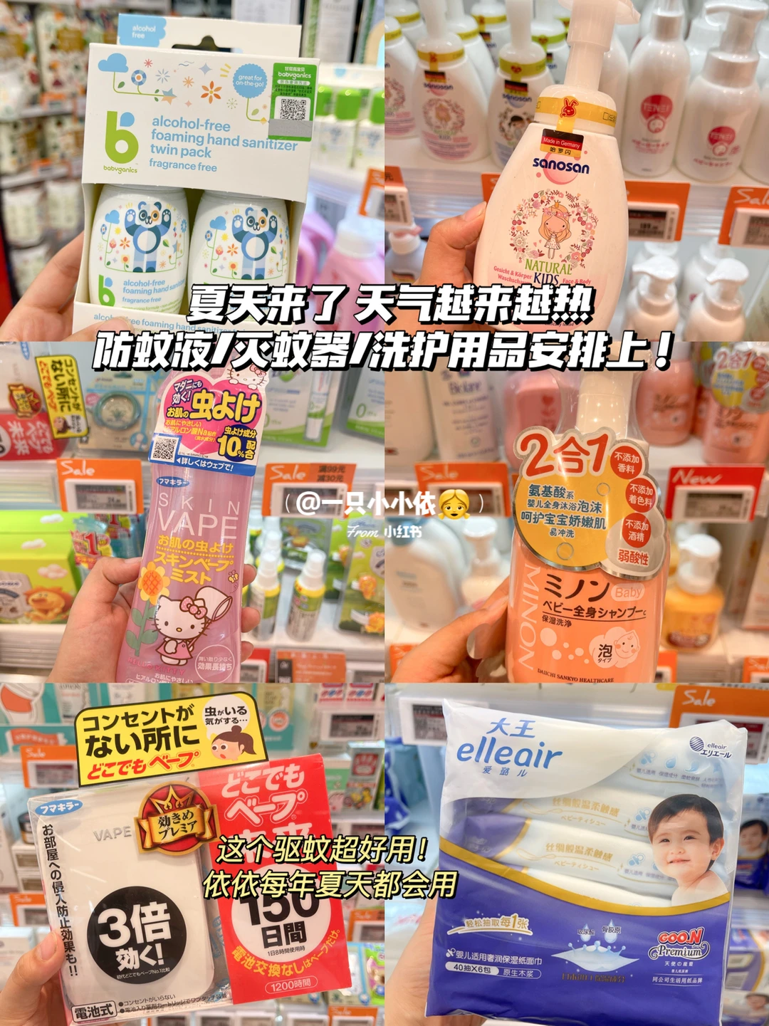 ✨天气越来越热啦,宝宝的洗护日用品得提前安排上了~VAPE家的驱蚊液和防蚊器我们一直有用,可以让宝宝少咬几个包👏🏻 甘尼克宝贝便携洗手液,带出去玩很方便;大王家的湿巾买1送1,这波不亏!