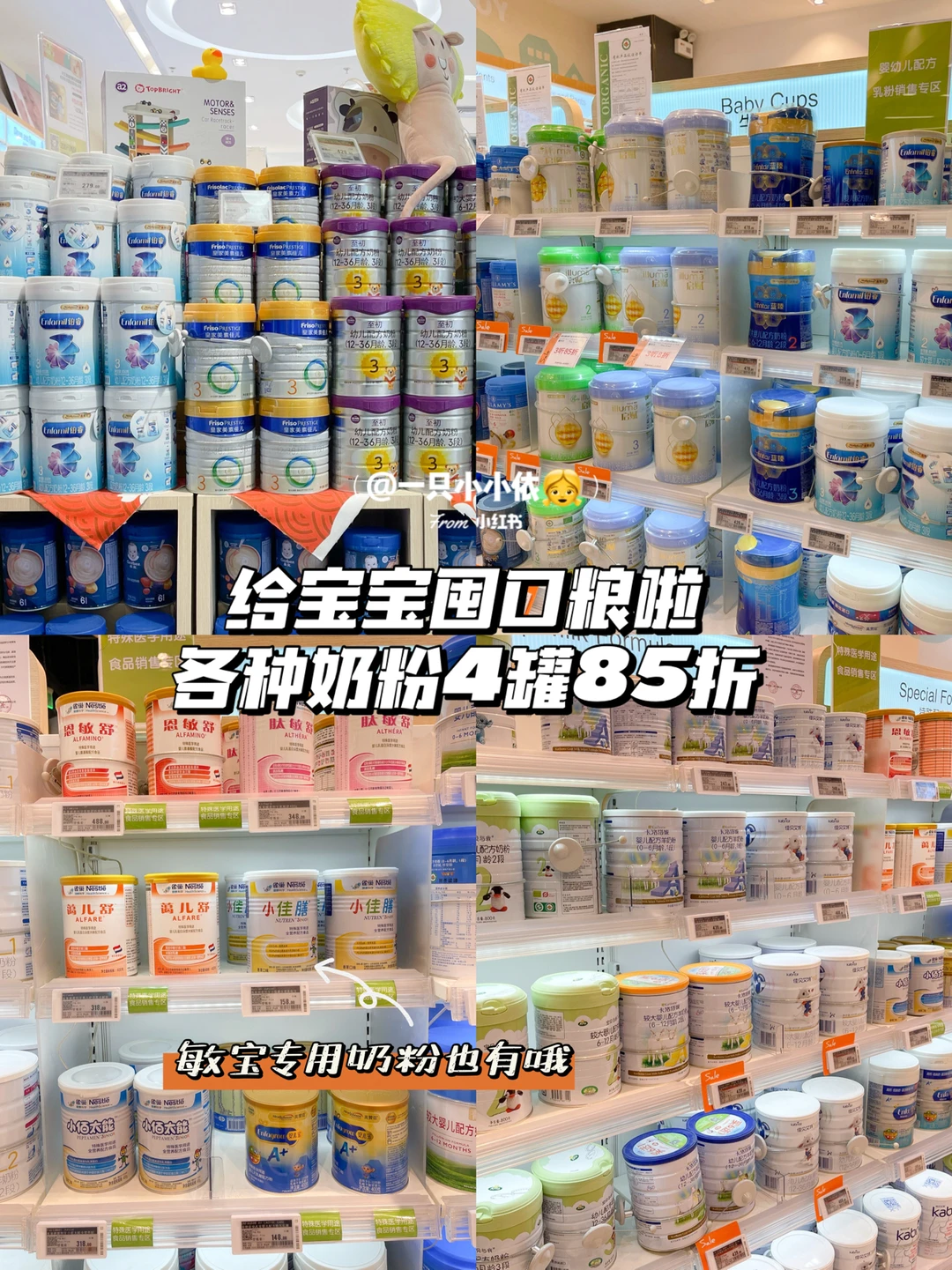 ✨给宝宝囤口粮可是大事,赶上活动千万别错过!这里的奶粉种类还是很全的,各种配方奶、羊奶粉都有,版本也很全,而且还有敏宝专用奶粉,全场4罐85折,冲啊!