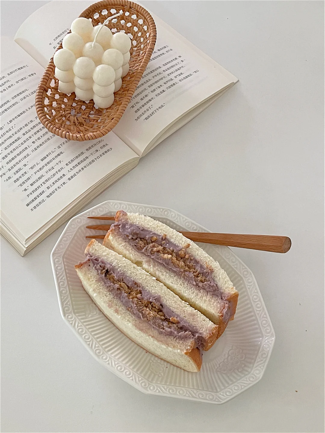 4.8早餐|俺最爱的治愈紫 夹心是酥脆肉松[色色R][色色R] 芋泥+紫薯捣成泥 拌酸奶或者是蛋糕夹心都是棒棒[赞R] 最近馋中式了,想早餐喝个粥吃个面~ 安排安排[偷笑R]