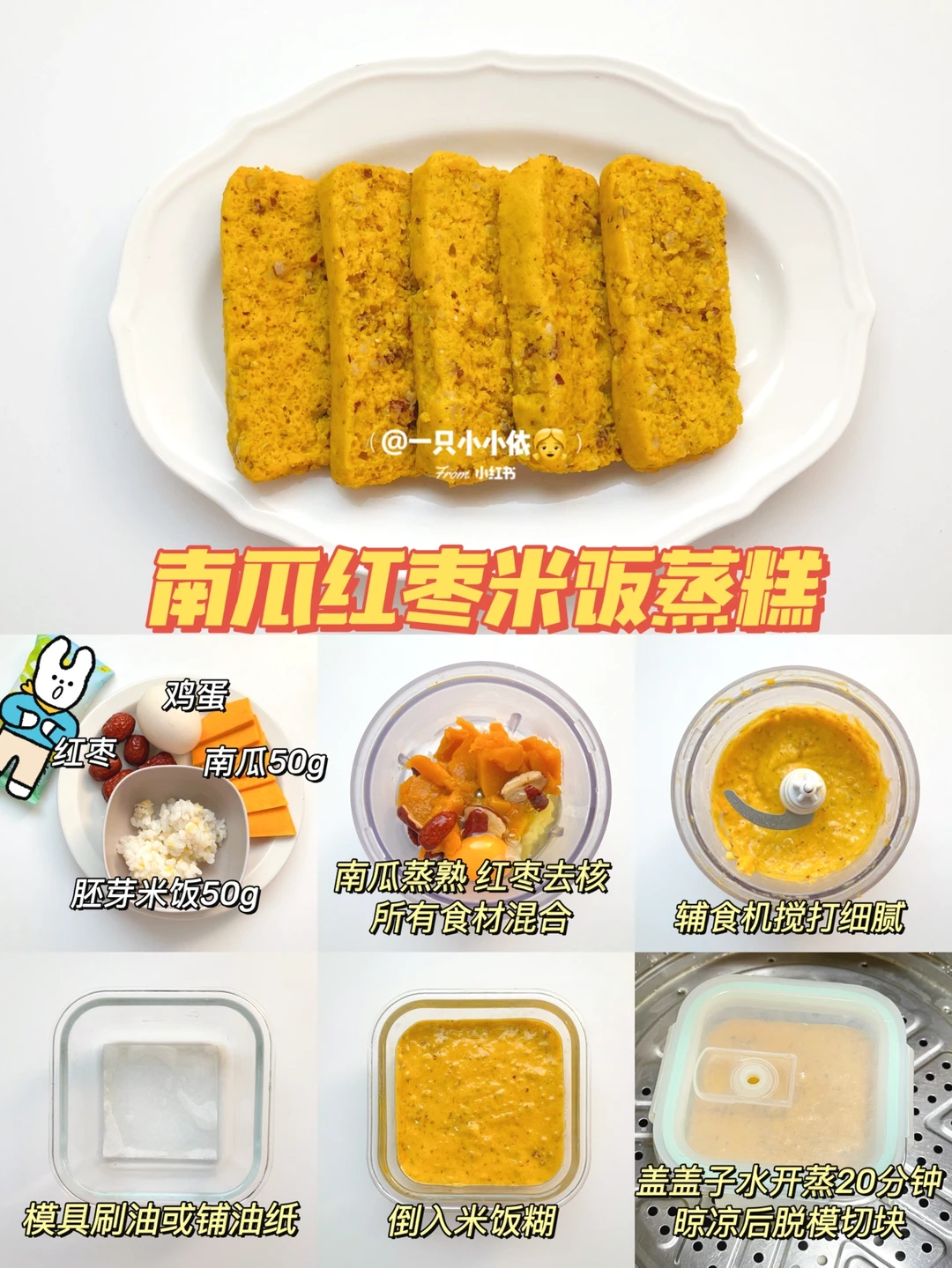 🔸食材:南瓜50g、红枣、鸡蛋、胚芽米饭50g