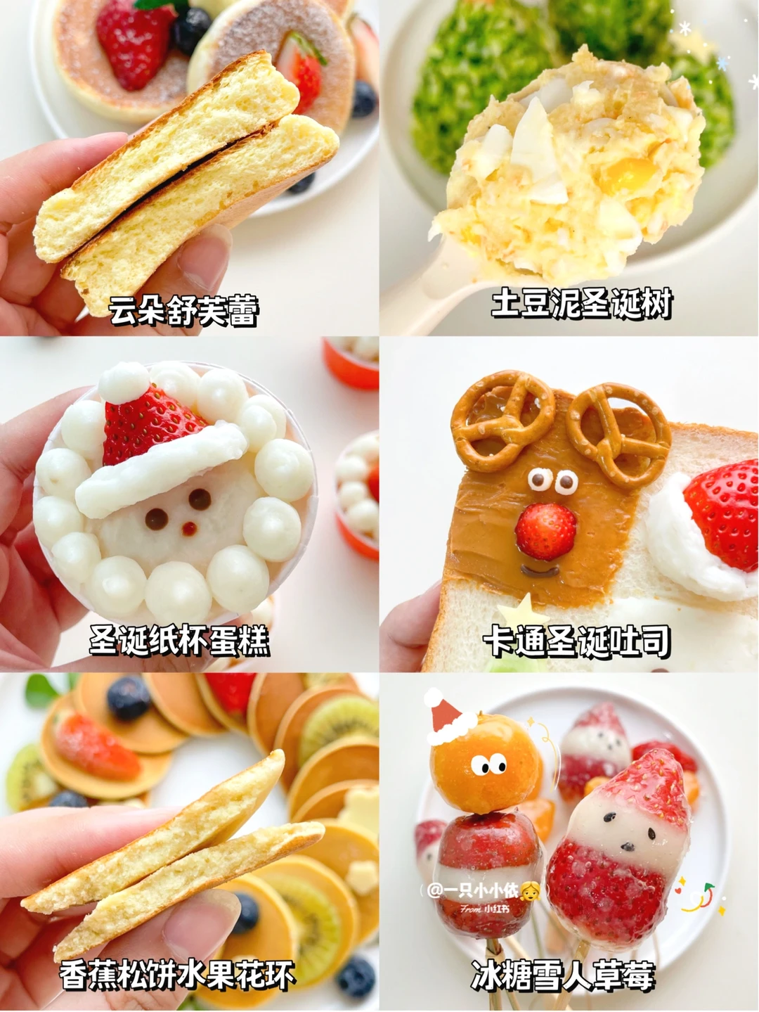 🍡本期分享6款高颜值小甜品,美味健康,简单易做0失败,有经典舒芙蕾、香蕉松饼、纸杯蛋糕,还有颜值美味都在线的土豆泥圣诞树、冰糖草莓、卡通吐司,氛围感直接拉满!当作早餐或下午茶都🉑️哦~