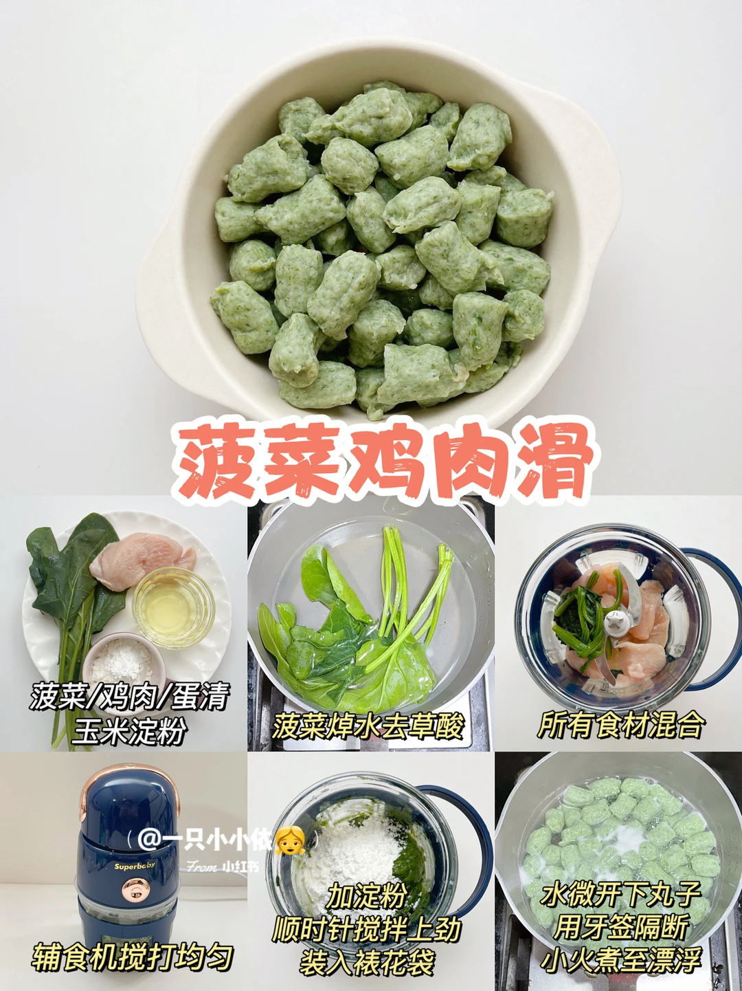 🔸食材:菠菜/鸡肉/蛋清/玉米淀粉
