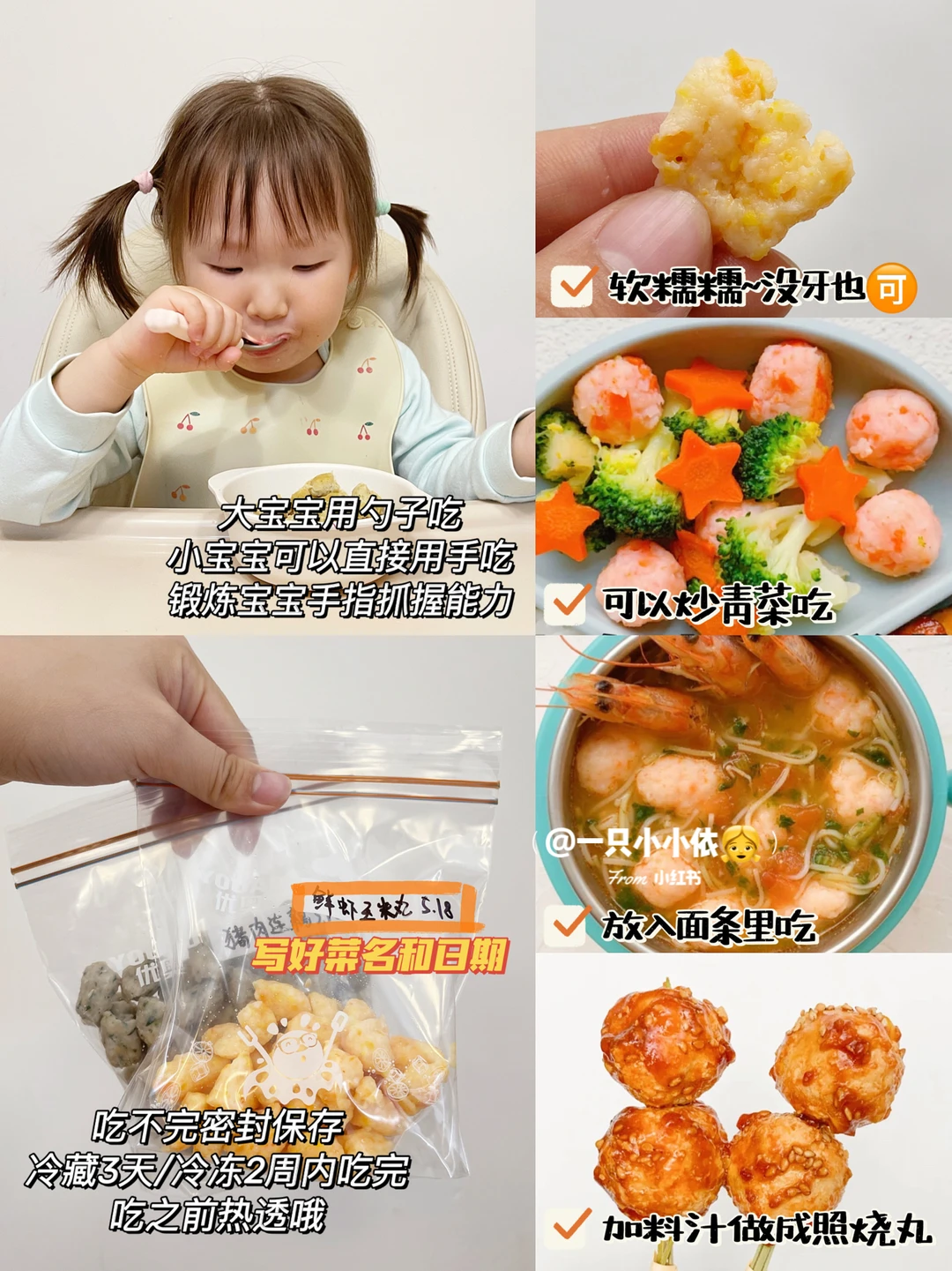 6⃣️种简单快手的小肉滑,有虾滑🦐鱼滑🐟各种口味😄有肉有菜、软糯美味、不干不柴,轻轻一抿就碎了,没牙宝宝也🉑️!当手指食物直接吃,或者拌面条、炒菜都可以哦~8月龄就能尝试啦[偷笑R]