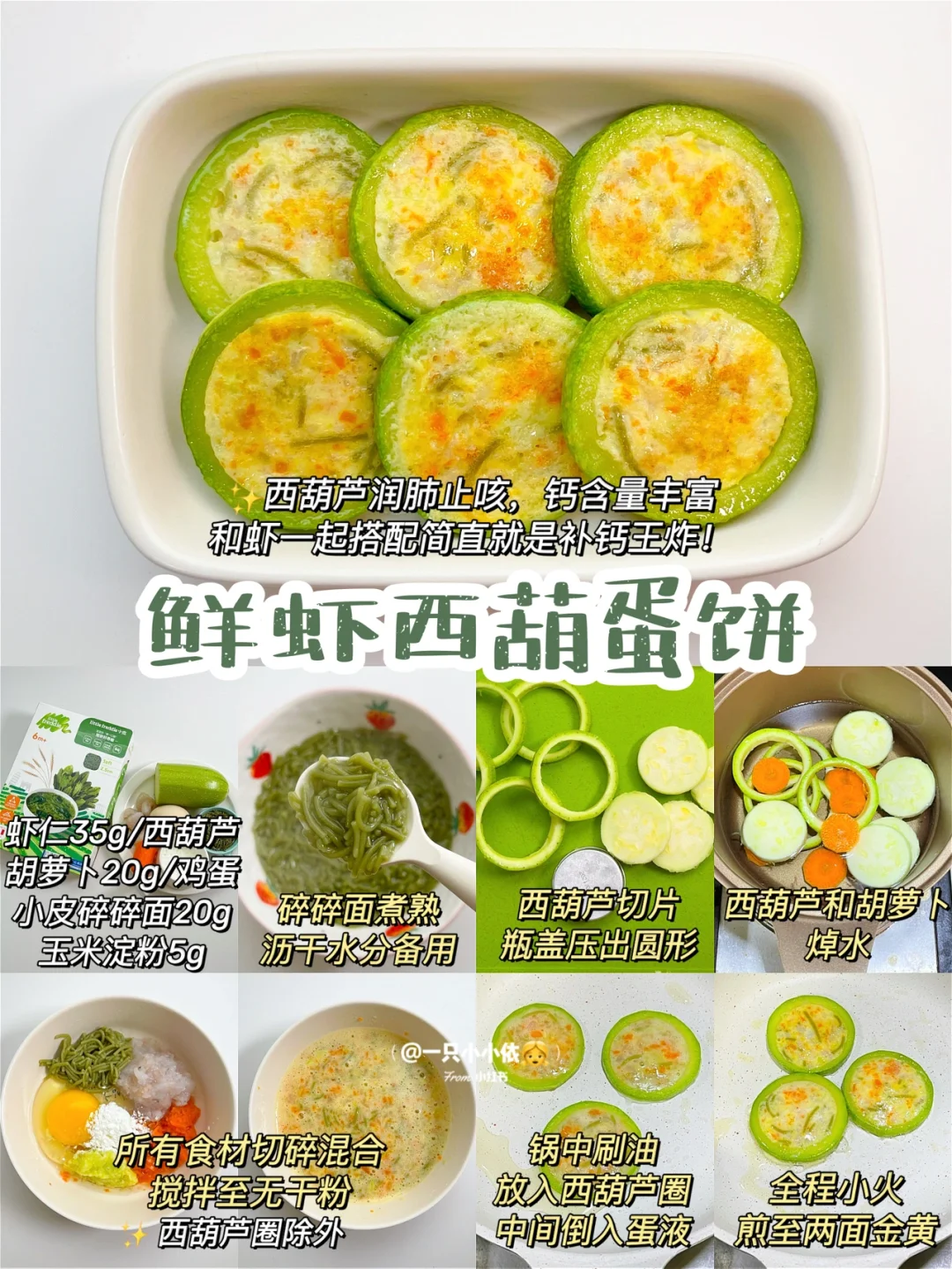 🔹食材:虾仁35g、西葫芦半个、胡萝卜20g、鸡蛋、碎碎面20g、玉米淀粉5g