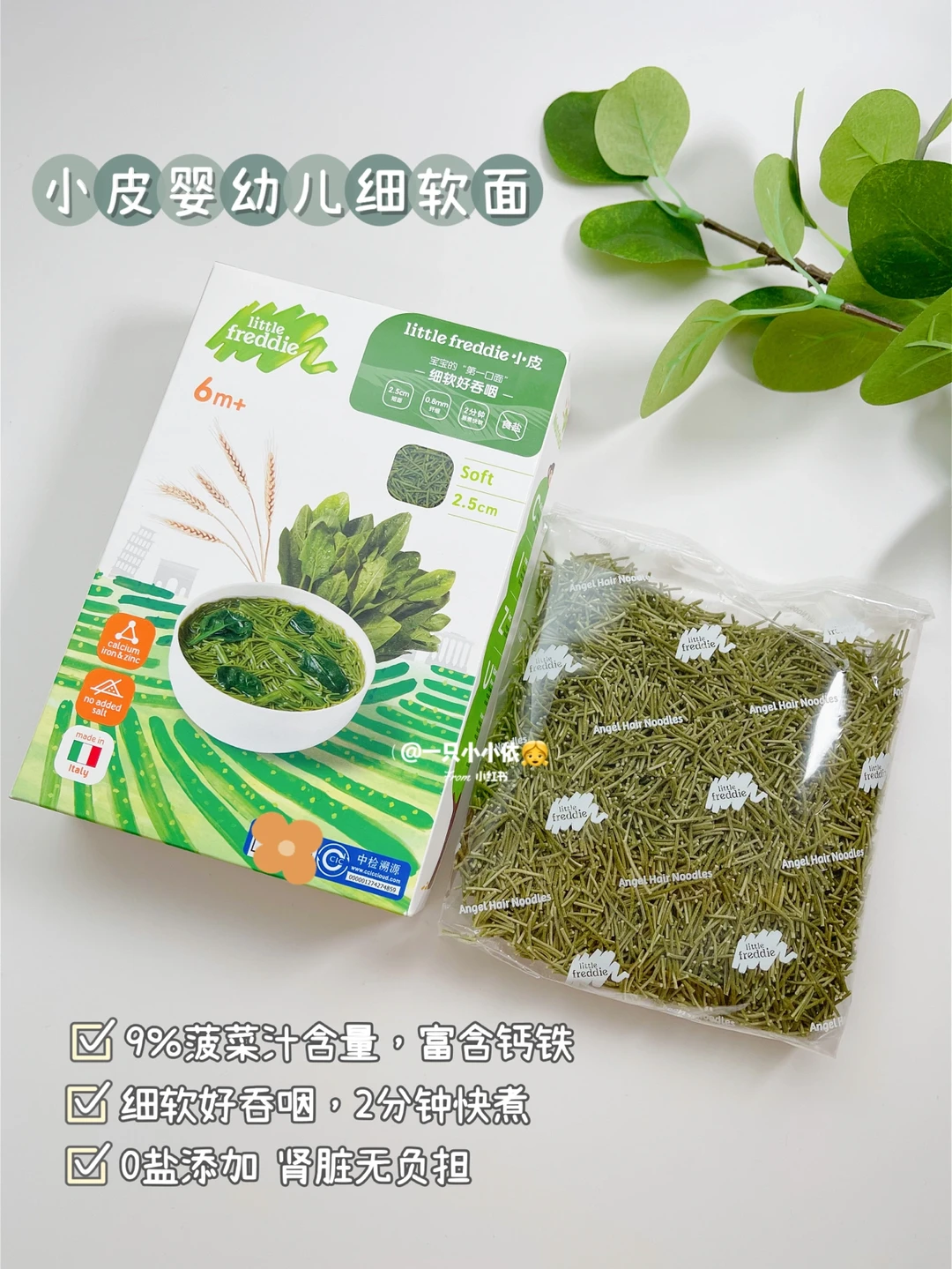 有的宝宝刚添加辅食时,比较抗拒蔬菜,那可以试试小皮婴幼儿细软面哦[斜眼R]细短软好吞咽,很适合6m+作为宝宝第一口面条,除了这次用的菠菜味,还有南瓜味、胡萝卜味、原味,每种蔬菜含量都在9-12%,比普通宝宝面条高出三四倍,可以帮助宝宝适应蔬菜味道👏🏻而且小皮面条的长度只有2.5cm,2分钟就能煮好,软糯好吞咽,刚添加辅食的宝宝可以pick!