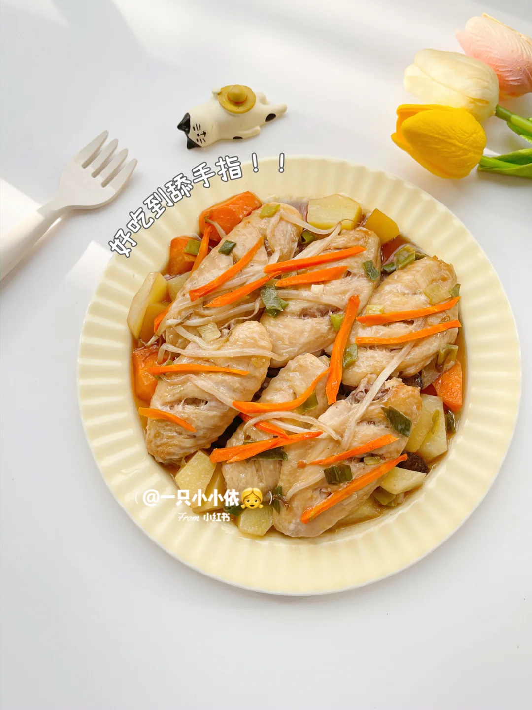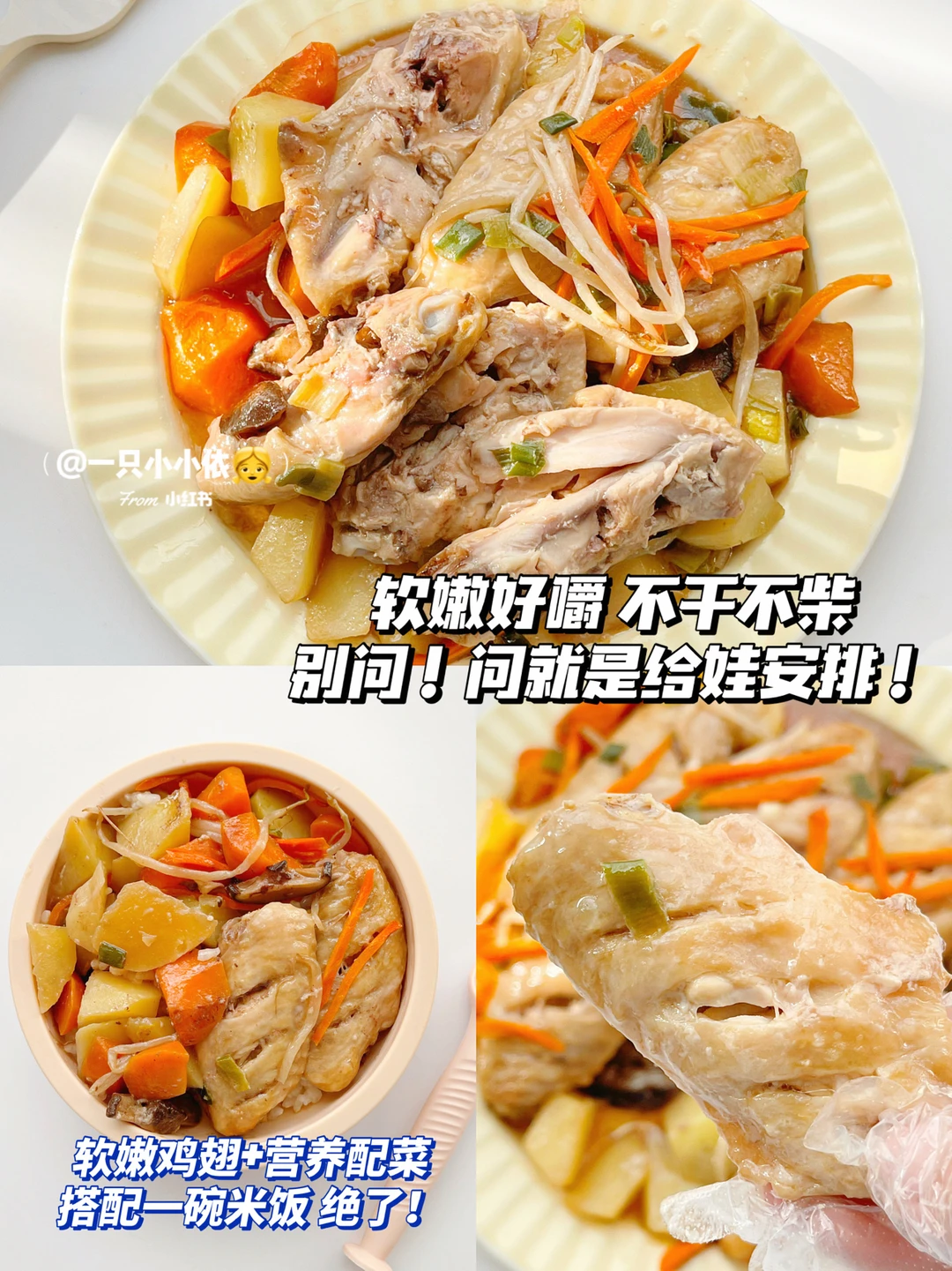 🧚♀️快手0厨艺,只要3步就搞定✅鸡翅和蔬菜一起上锅蒸,肉嫩汁多、营养均衡,而且汤汁也很鲜美,拌在饭里吃绝了[大笑R]宝宝自己拿着吃,还可以锻炼自主进食哦!