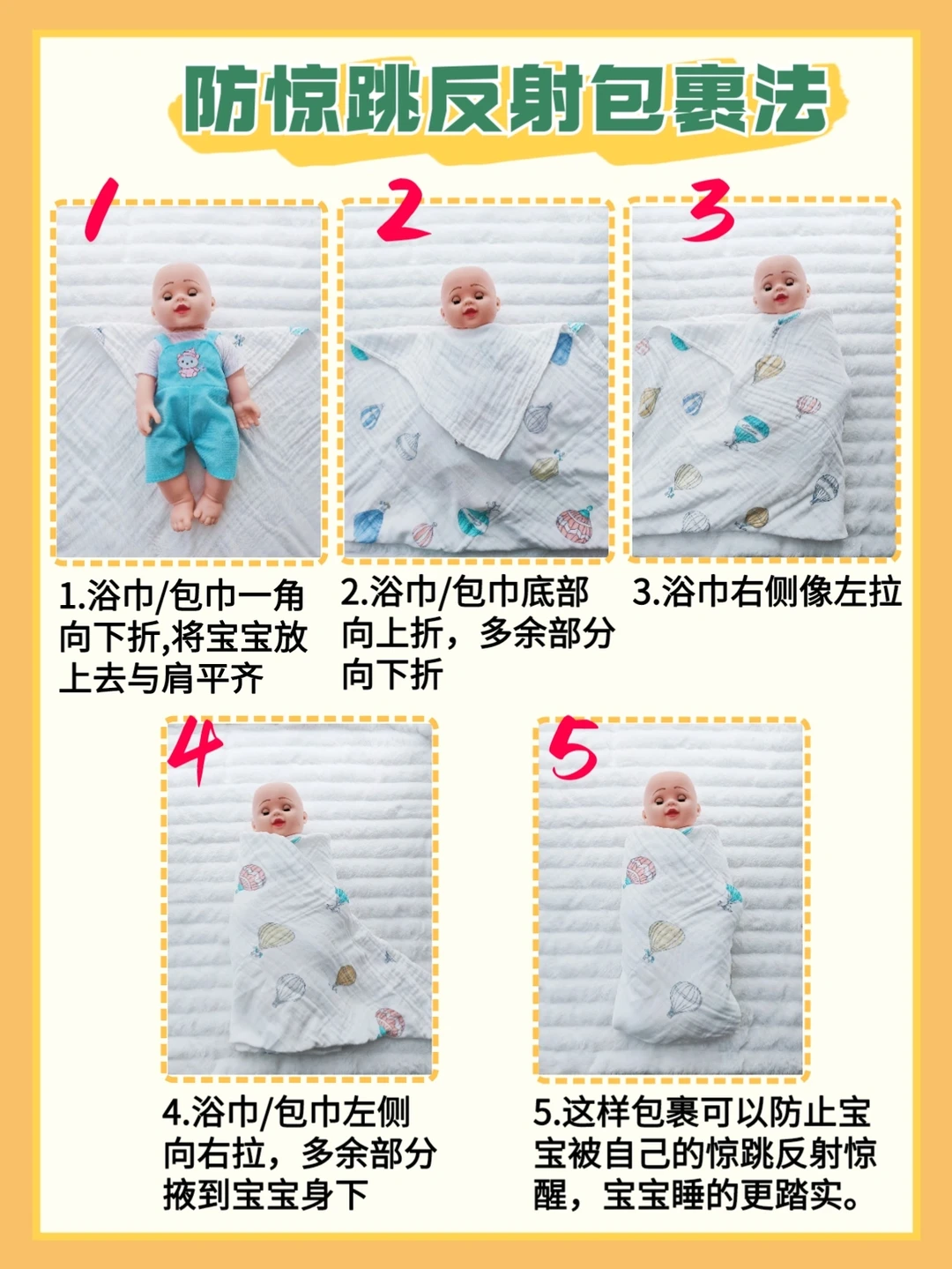 👉这样包裹可以防止宝宝被自己的惊跳反射吓到,让宝宝更有安全感,宝宝睡觉更踏实!